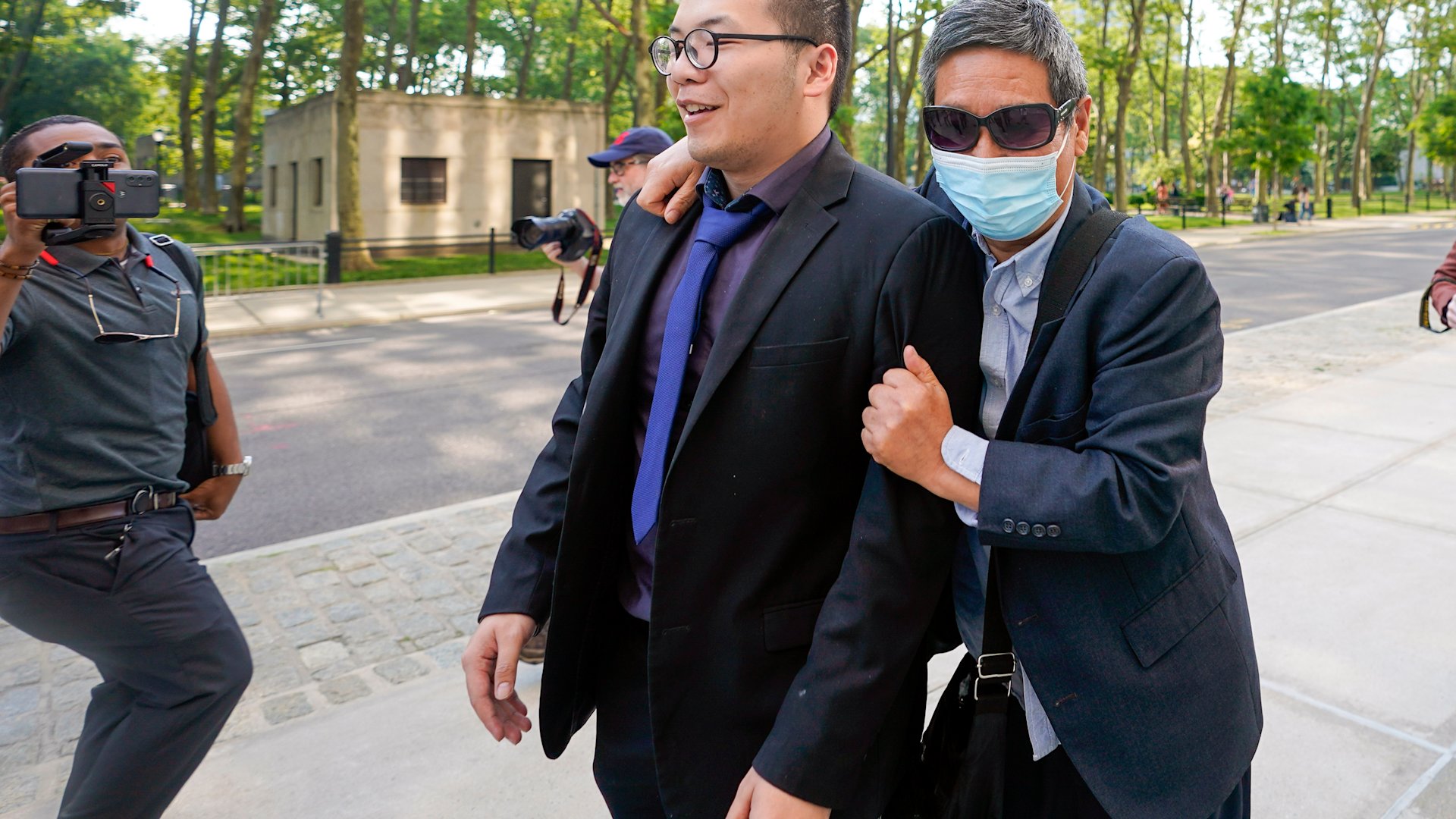 FILE - Zheng Congying leaves federal court, May 31, 2023, in the Brooklyn borough of New York. Zheng was one of three men accused of participating in an escalating series of scare tactics aimed at repatriating a former Chinese official who was living quietly in New Jersey. Zheng was convicted of stalking and stalking conspiracy but acquitted of the other charges. (AP Photo/Mary Altaffer, File)