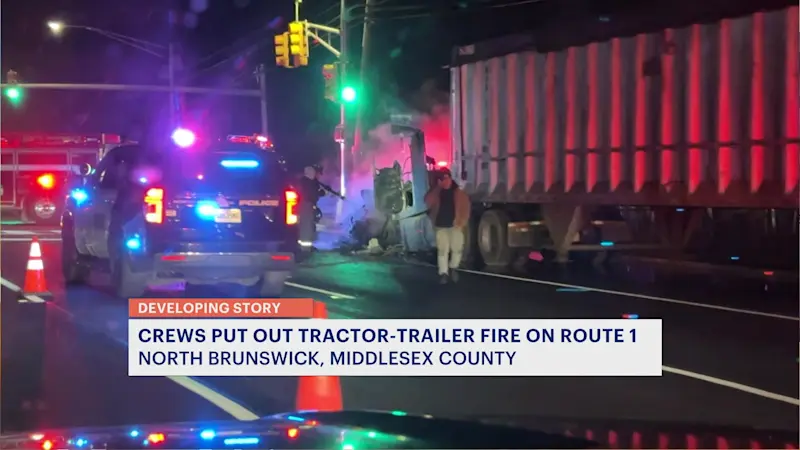 Route 1 north reopens after early morning tractor-trailer fire in North Brunswick