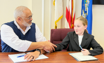 Woodbridge fifth grader participates in First Selectman for the Day; issues bat awareness proclamation