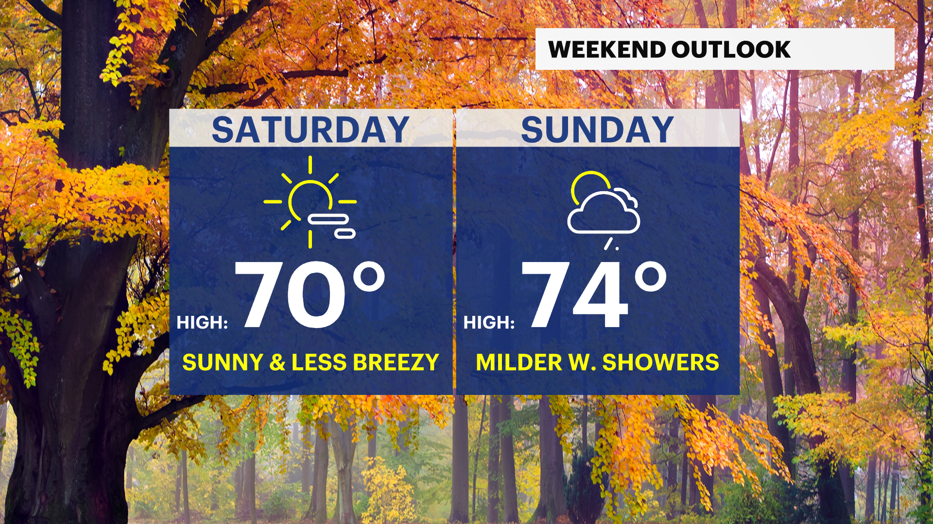 NEXT: A milder trend this weekend, with 70s returning by Sunday, along with a few late-day showers.