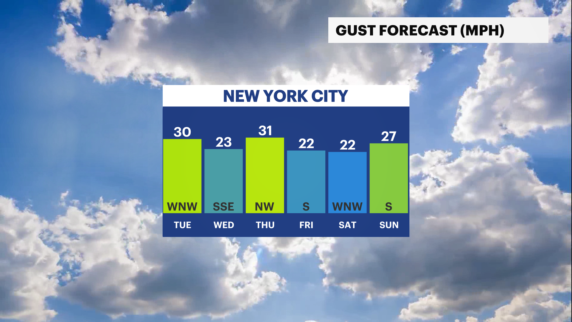 Tuesday: Sunny, cool and breezy. Highs near 61. Lows near 44.