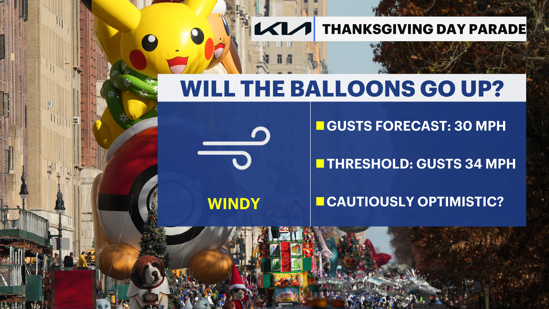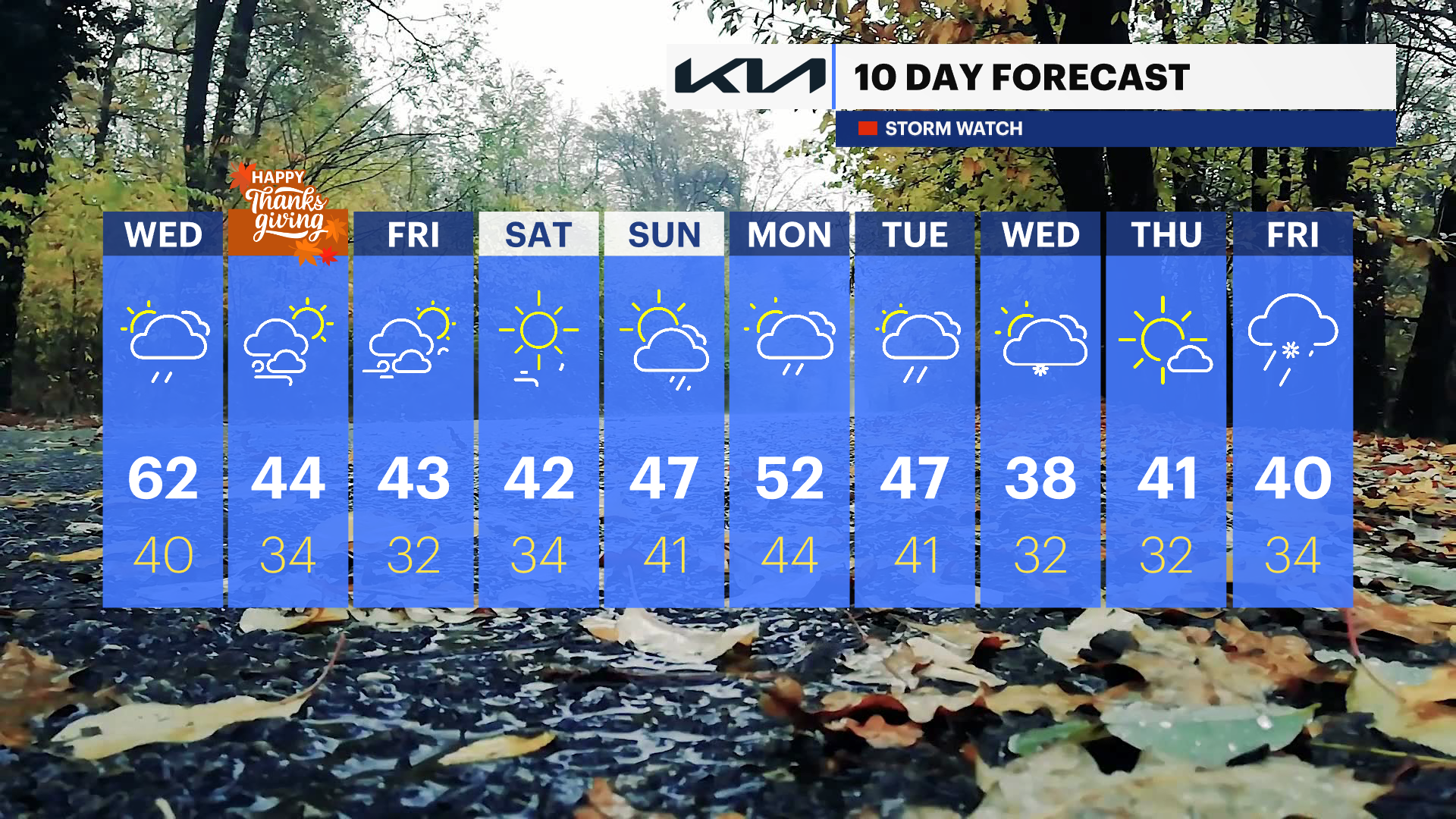 Thanksgiving will plummet us back to the 40s, with gusts making it feel even colder. The wind isn't just annoying because of how cold it is making the temperatures feel, but also for the Thanksgiving Day Parade. Balloons can't fly if we have gusts of 34 mph or stronger, and we are forecasting into the low 30 mph range for Thursday. If they are stronger than planned for, this could impact the parade. Either way, if you are heading out to enjoy the festivities, wear layers and plan for colder feeling weather.