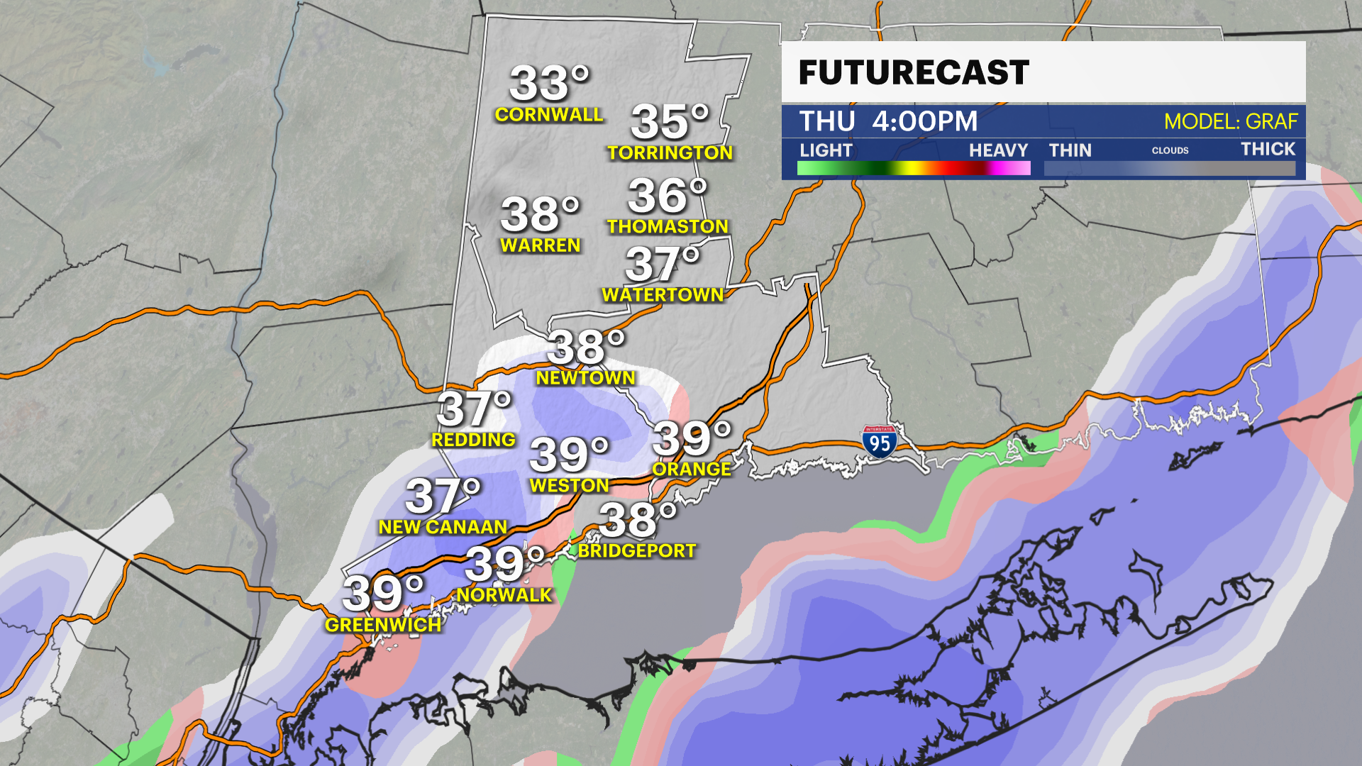 Cooler numbers in the 60s along the Sound, but still a mild day.