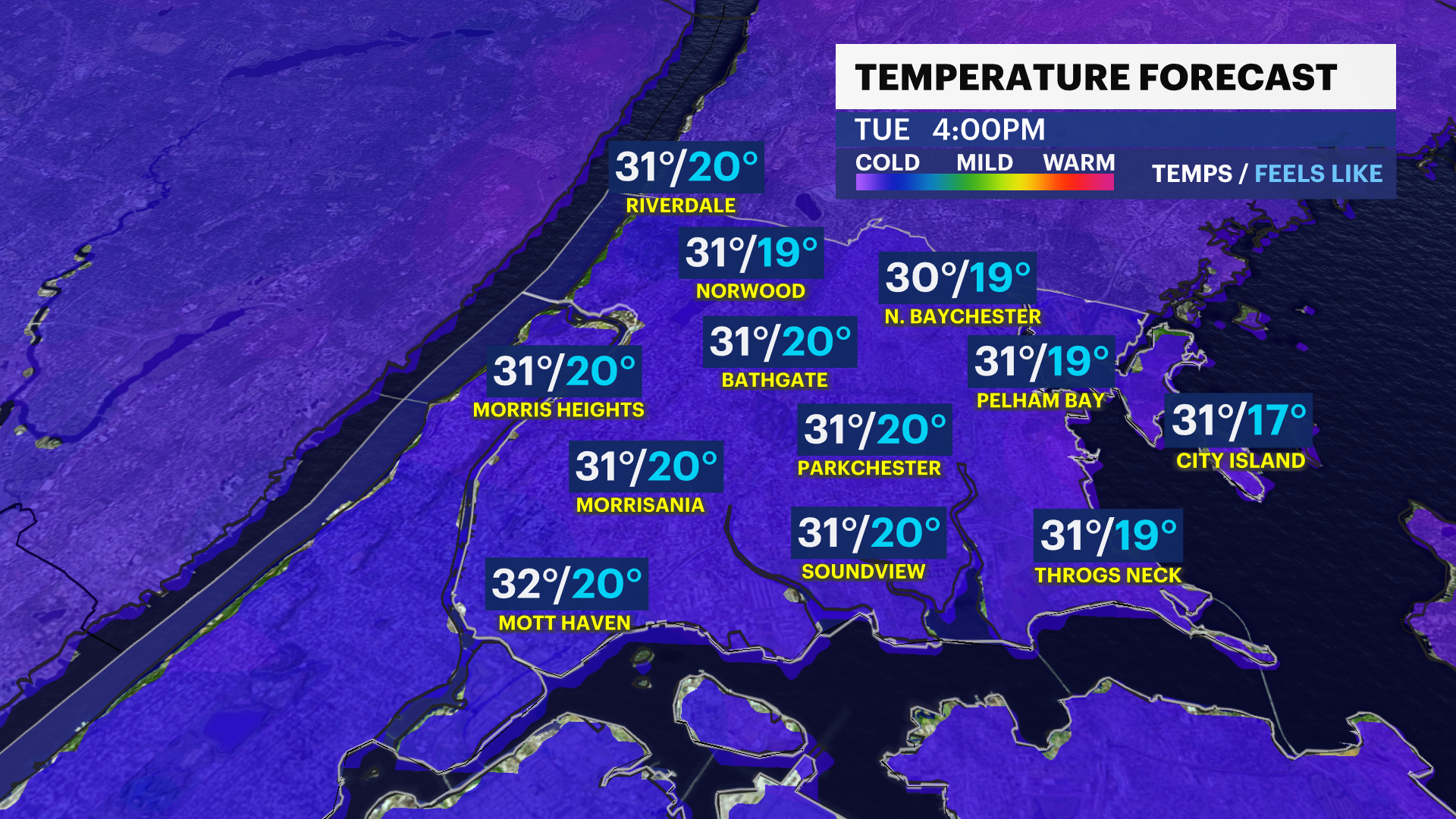 • Unfortunately, the gusty winds and bitterly cold air mass last all day with wind chills in the teens and low 20s. Gusts up to 50 mph will be problematic throughout the afternoon. Tie down any loose outdoor objects, temporarily bring in trash bins and decorations.