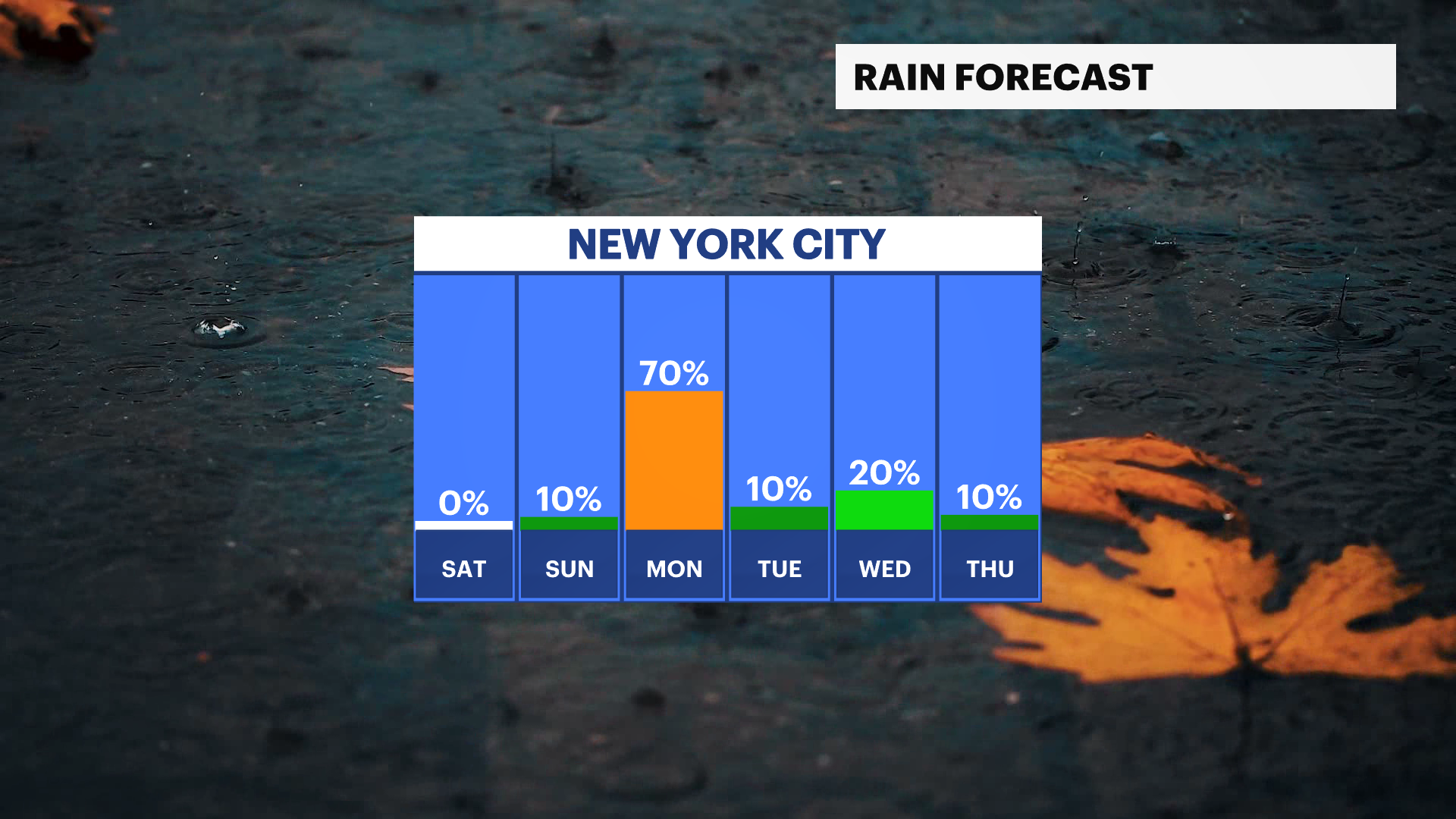 • This weekend will be mild with highs in the mid-60s to low 70s. It stays nice and dry during the daytime hours for any outdoor Fall activities.