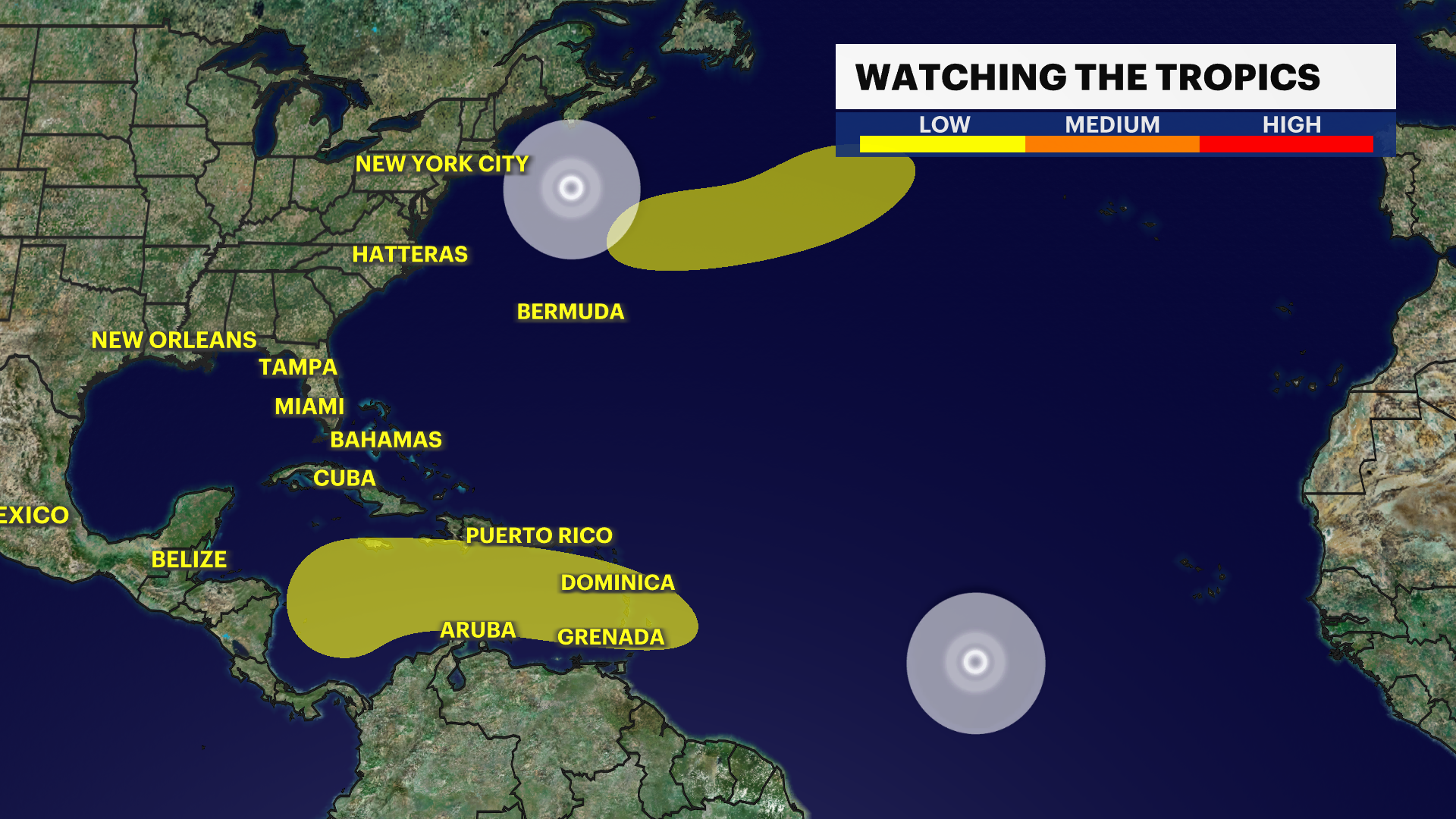 TRACKING THE TROPICS: There are two tropical waves in the Atlantic that has a low chance of development next week. Heavy rain and gusty winds are possible across the Windward Islands from Sunday into early next week. Even though we've passed the peak of hurricane season, it doesn't officially end until November 30th. Stay tuned for updates!