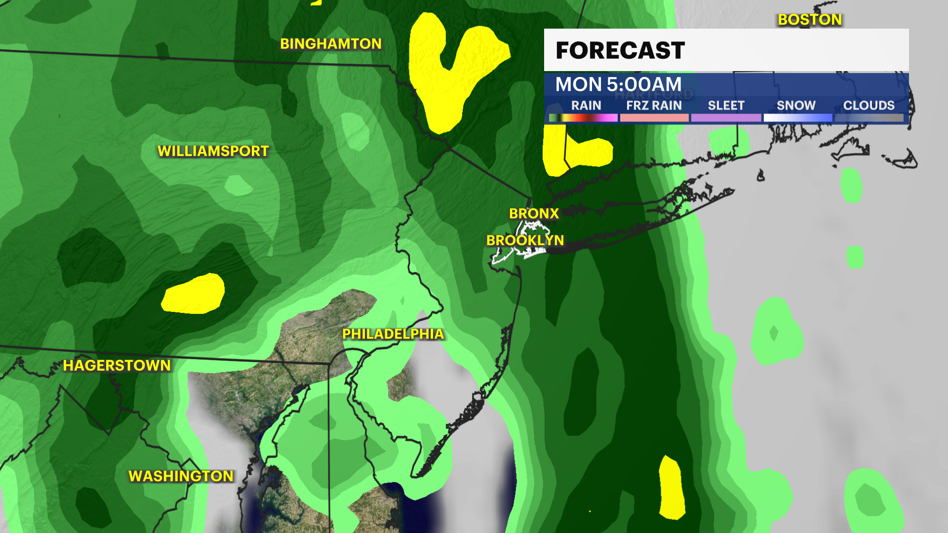 • A cold front will move through our area on Sunday night into Monday. The storm is trending weaker with lower impacts. A few steady scattered showers arrive after 11PM on Sunday through Monday afternoon. It will be breezy at times on Sunday afternoon and throughout the day Monday.