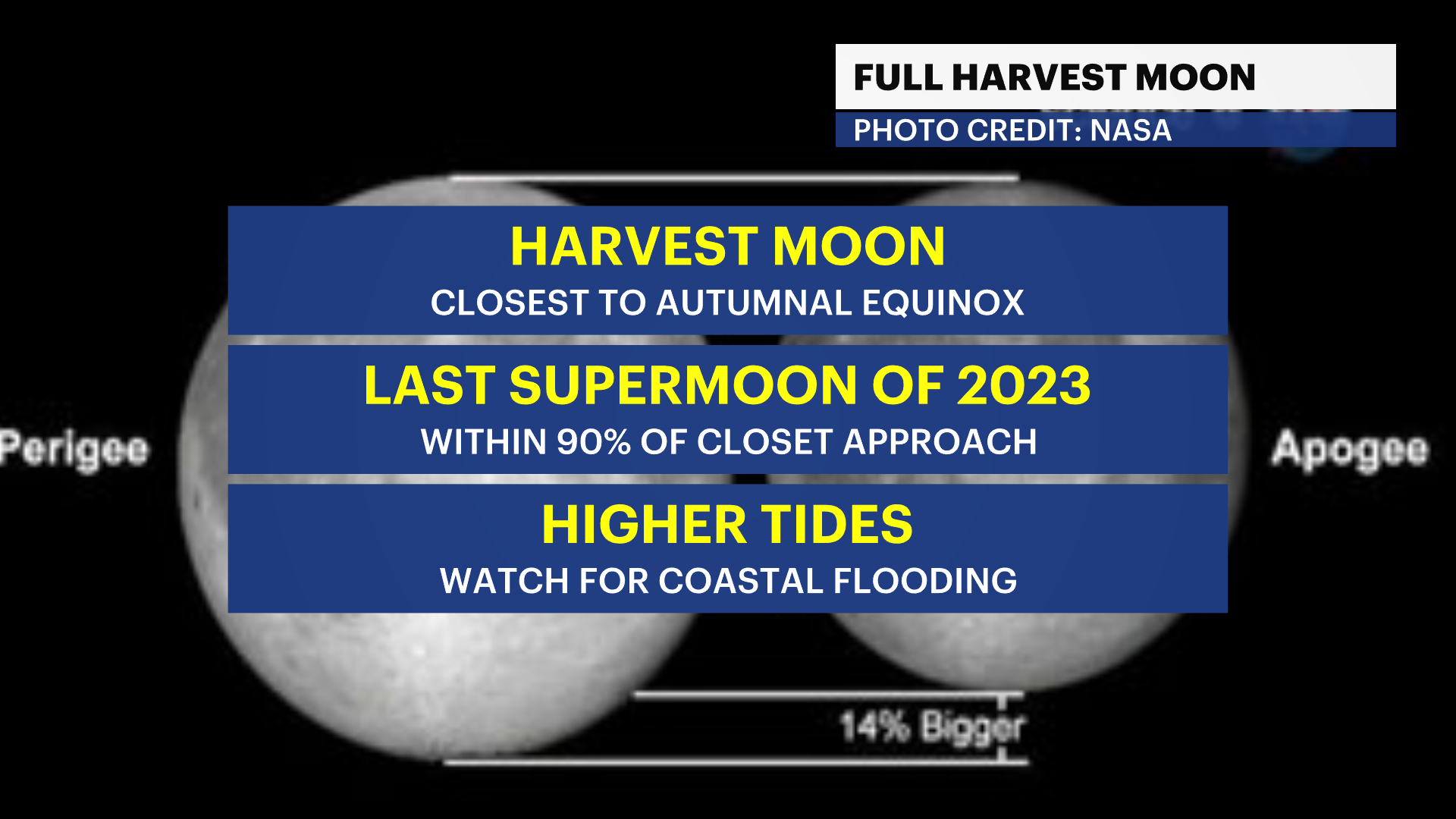 The timing of this full moon isn’t great for coastal communities. With another storm offshore in the next few days, tides will be running high already and coastal flooding is a concern. The moon will enhance conditions and possibly aid in flooding, which may last into the weekend.