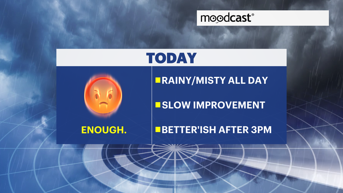 TOMORROW: Finally sunny! Mild. Highs near 72. Lows near 60.