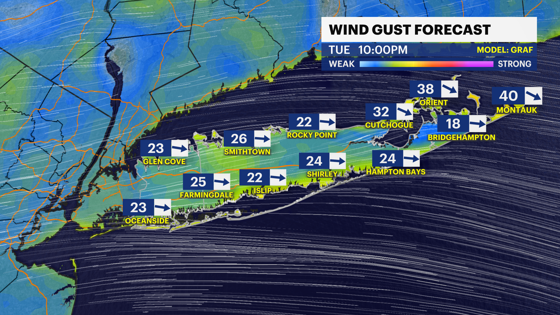 It still feels like the 20s to low 30s at best with a gusty westerly wind that will only drop into the 20 to 30 mph range this evening. That is still an improvement from some isolated 40 to 60 mph gusts across Long Island earlier today. Those gusts led to scattered wind damage and some isolated power outages. While a few additional power outages cannot be ruled out, the wind does improve a bit overnight and into early Wednesday.