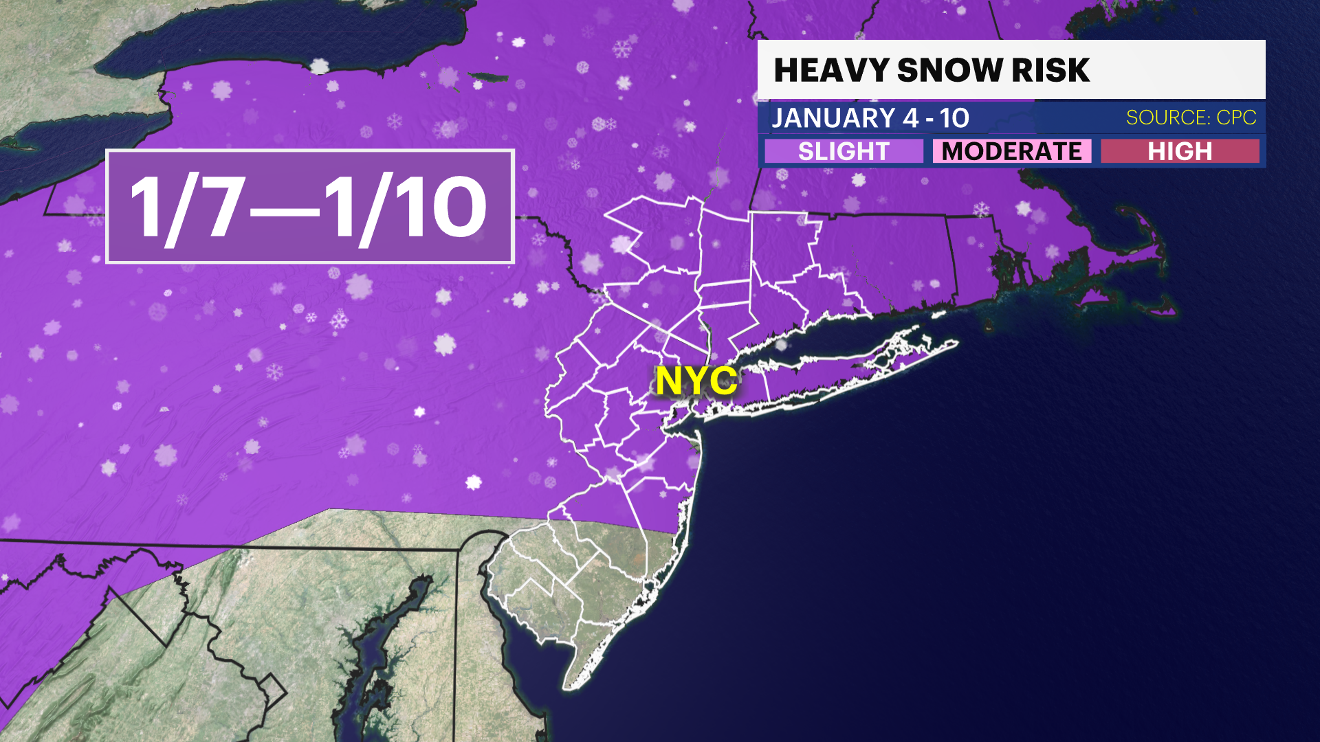While history does not necessarily repeat itself, it often imitates. If the Boxing Day Blizzard pattern and our upcoming pattern are very similar, expect an increased chance of a significant snowstorm or two after Jan. 3 through about mid-month. The Climate Prediction Center (CPC), which is a part of the National Weather Service (NWS), issued a slight risk of heavy snow between Jan. 7 and 10. While it is only a slight risk and not a high risk, any storm opportunity is still nearly two weeks away at the earliest. Also, this slight risk has not been issued in a long time and is noteworthy considering how the last few winters have been snow-starved.