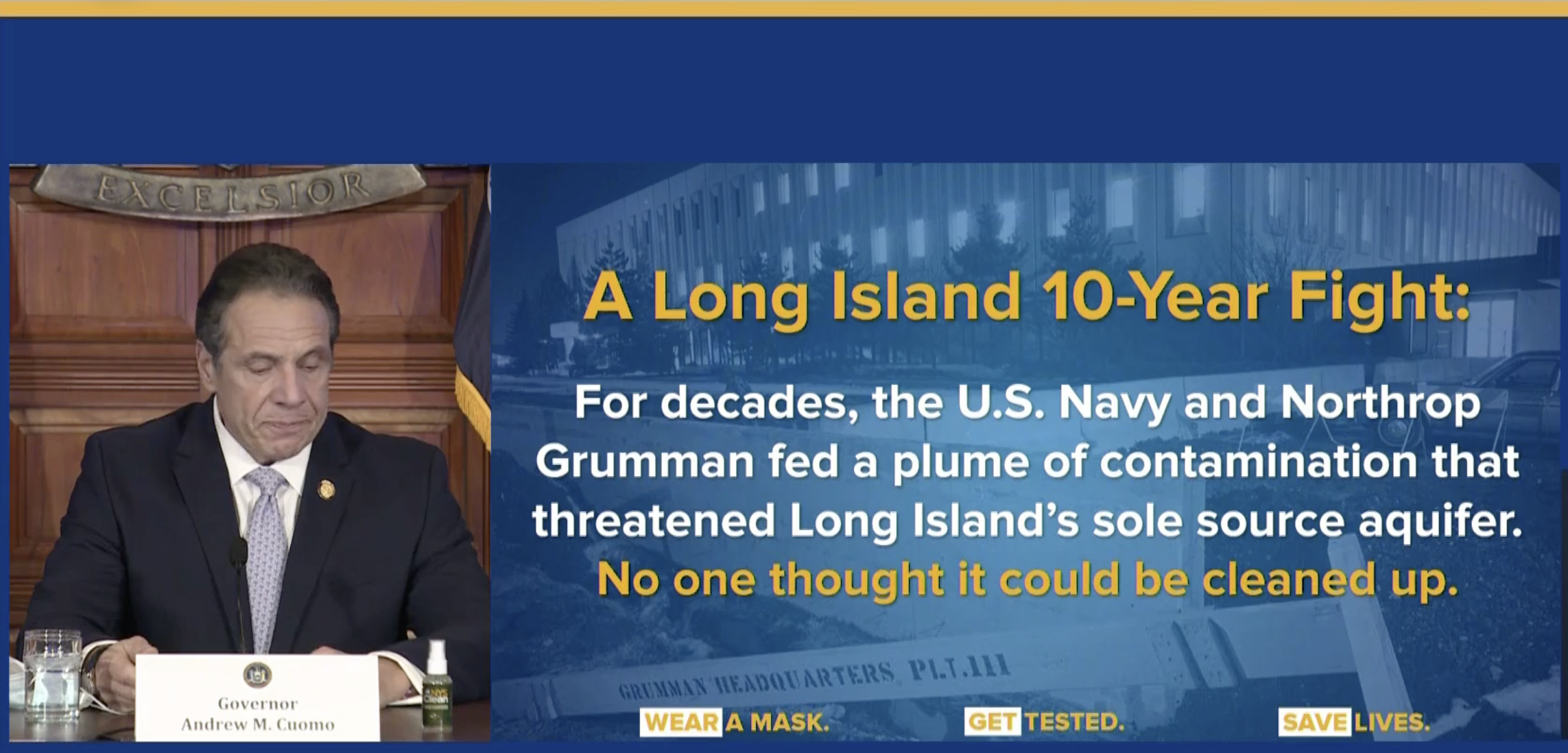 Cuomo said at Monday's COVID-19 news briefing that the plume was a personal issue for him for many years, back to his days as attorney general. "It was a long fight, but it will protect the drinking water for the people on Long Island," he said.