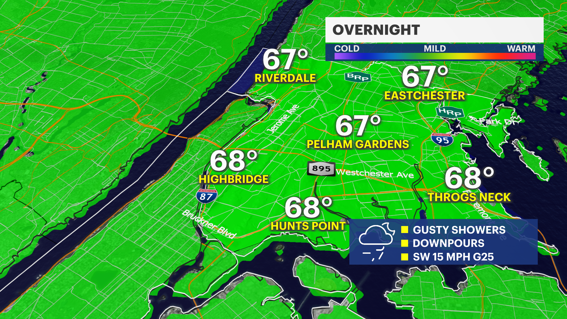 OVERNIGHT: Lows in the 60s. Wet and windy.