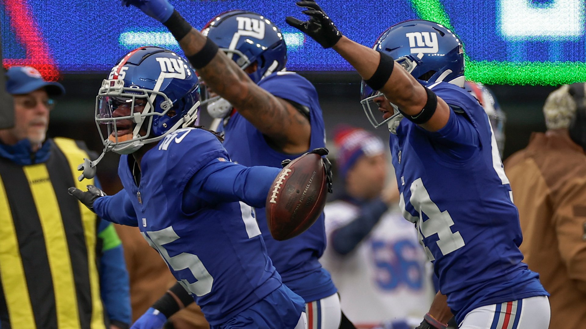 Rookie cornerback Deonte Banks made his second interception of the season late in the first quarter for the Giants' first takeaway.