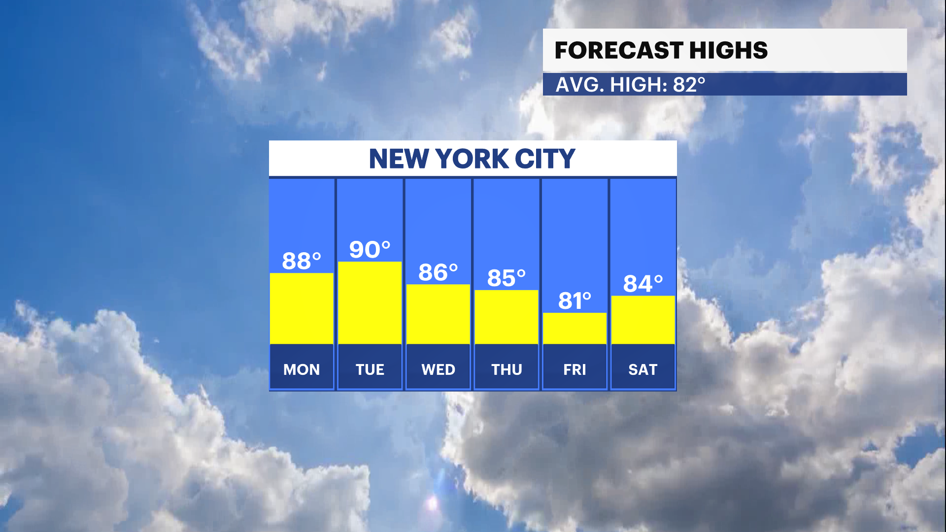 Saturday: Partly sunny, highs around the mid-80s.
