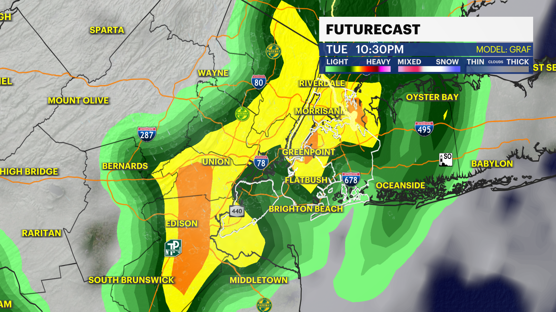 Tuesday: Partly sunny, hot and humid. Highs from the mid to upper-80s. At night, mostly cloudy and a chance of showers.