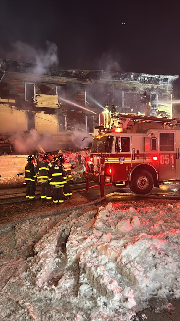 The FDNY says the call came in around 4:24 a.m. for a fire at 700 Adee Ave. and escalated to four alarms by 4:54 a.m. Video on the Citizen app shows plumes of smoke and a large FDNY presence at the scene.