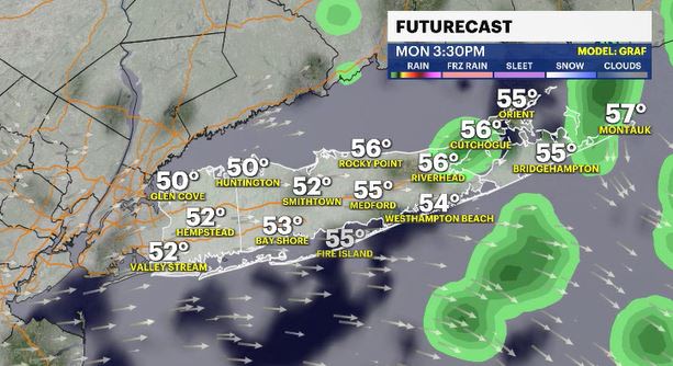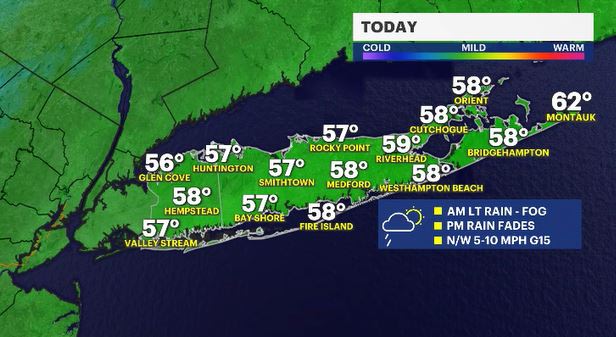 • Scattered showers and pockets of fog will be possible through the first half of the day on Long Island.