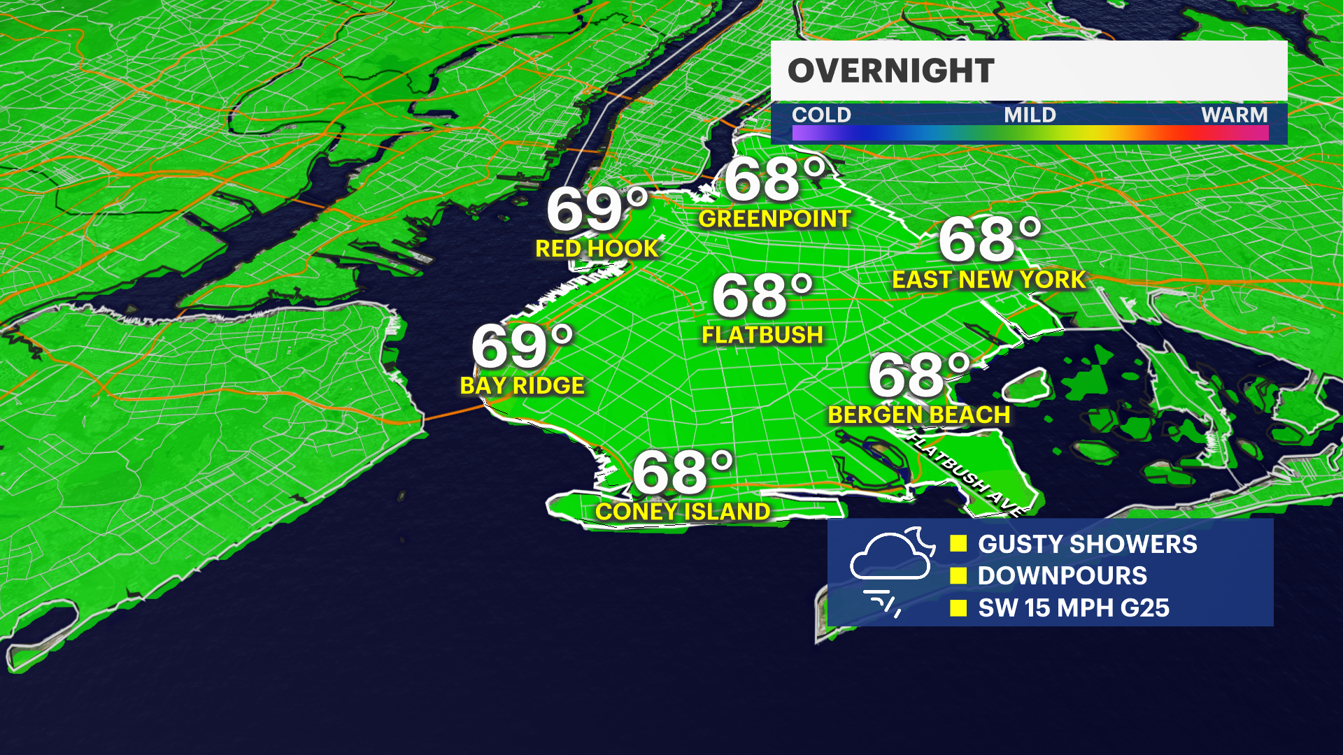 OVERNIGHT: Lows in the 60s. Wet and windy.