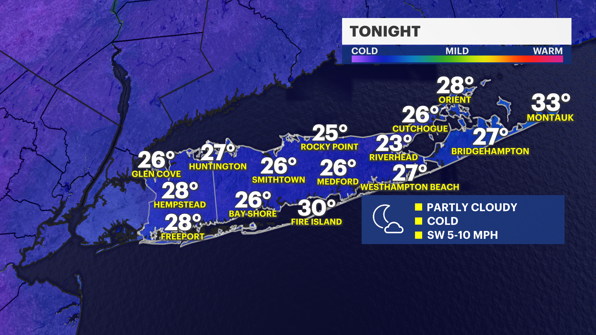 TONIGHT: Cold. Lows: Mid-20s. FIRST NIGHT OF HANUKKAH