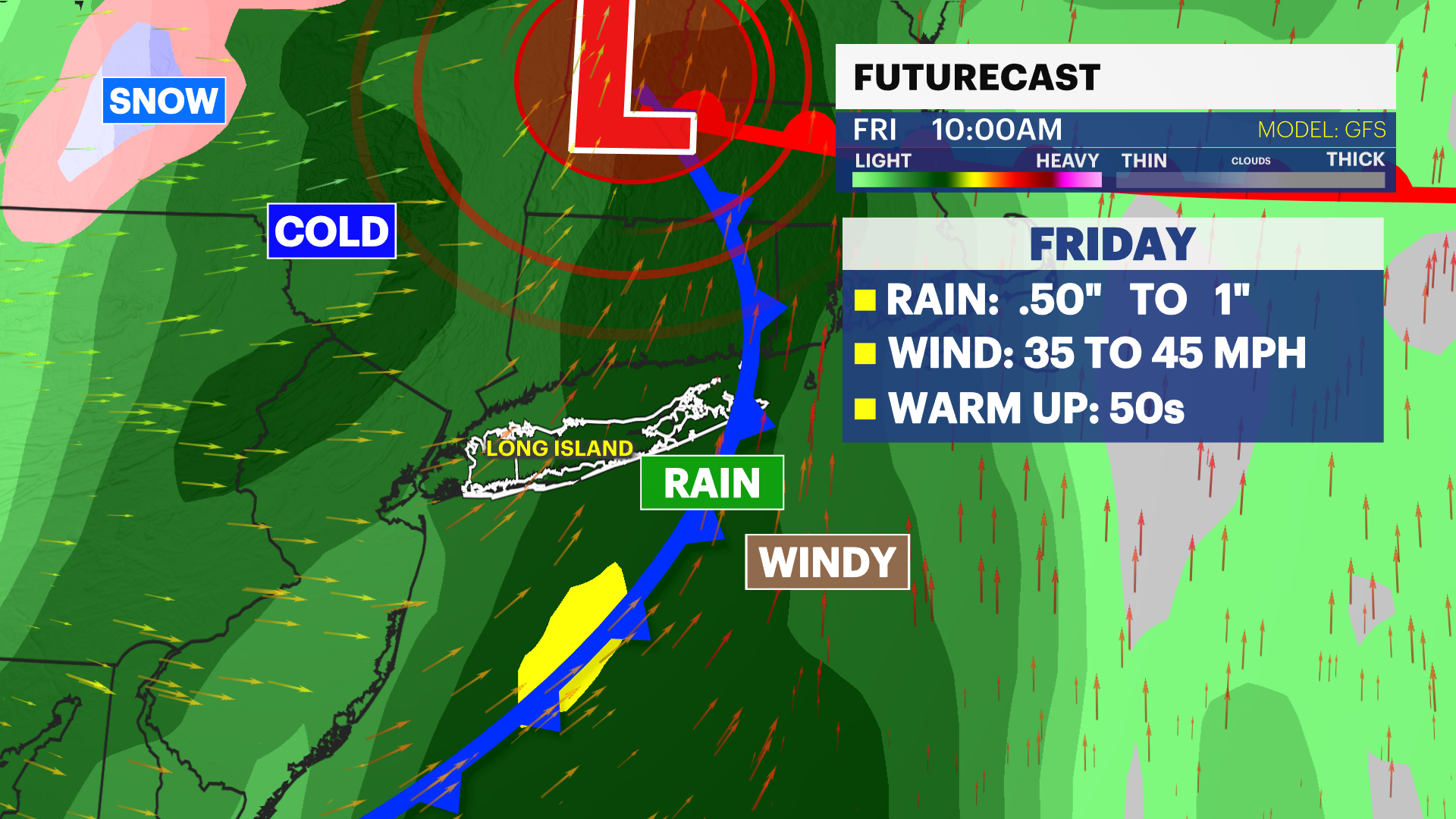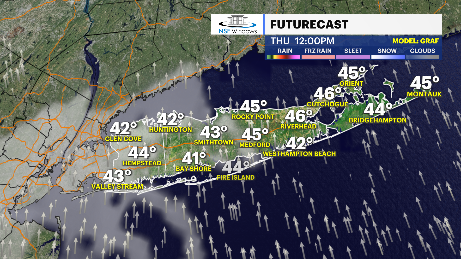 THURSDAY: Chance of rain showers. Temps rise to the low 50s.