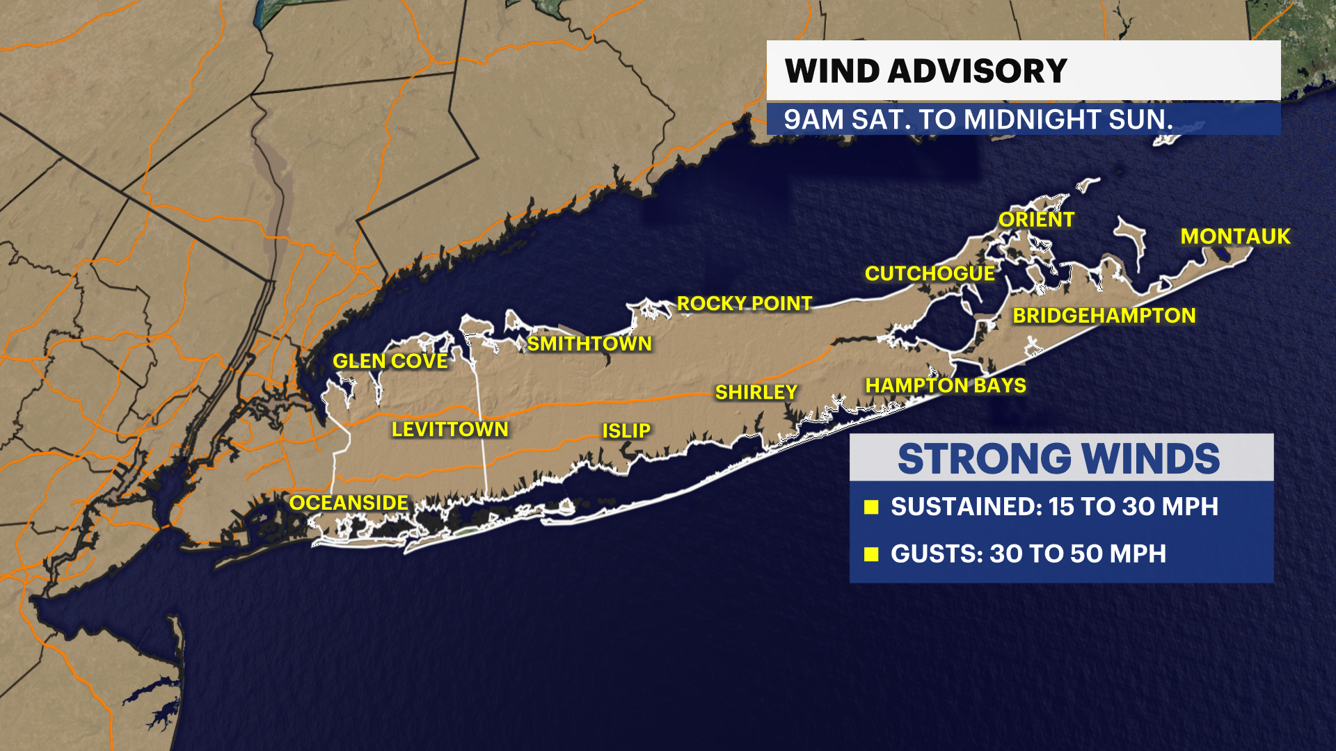 WIND ADVISORY: 9 a.m. Saturday through midnight Sunday. Strong winds gusting 30 to 50 mph. High winds can lead to trees and branches down and power outages. Be alert for changing weather conditions.
