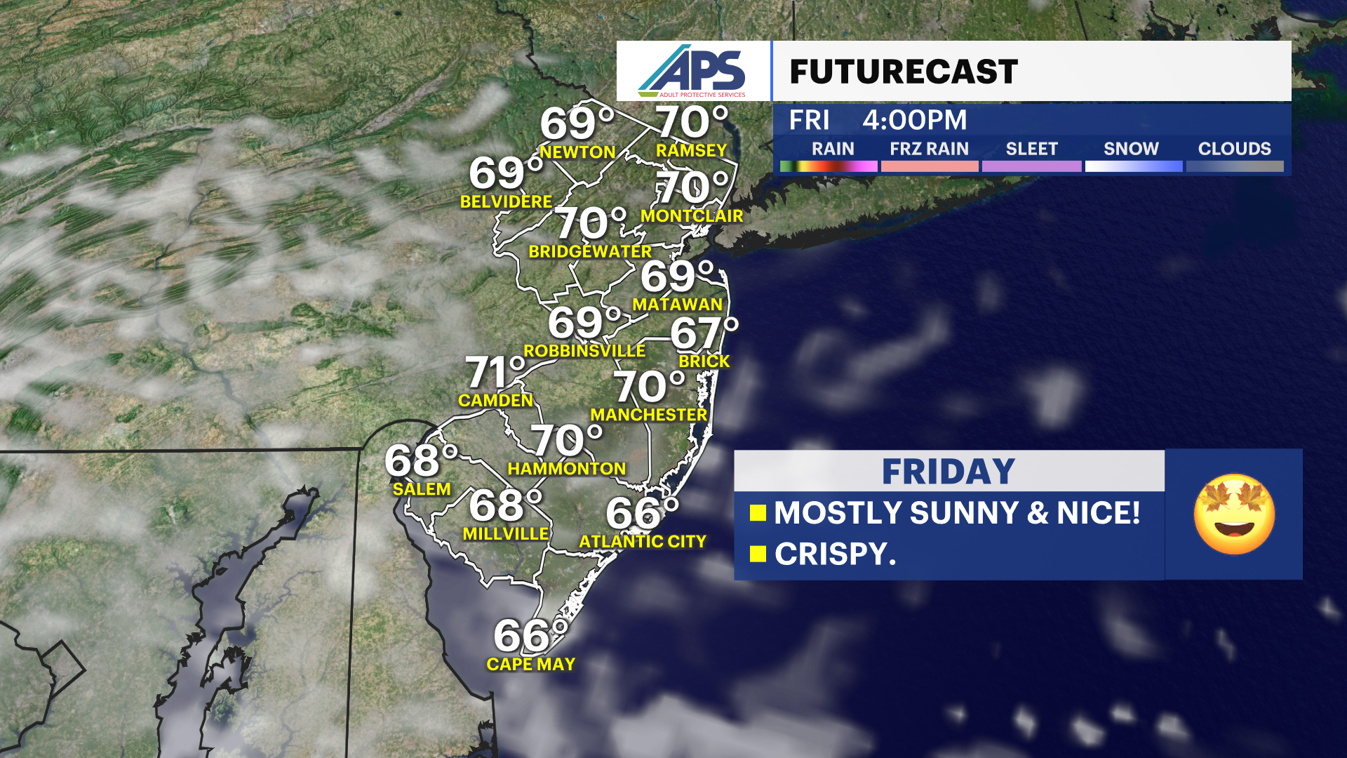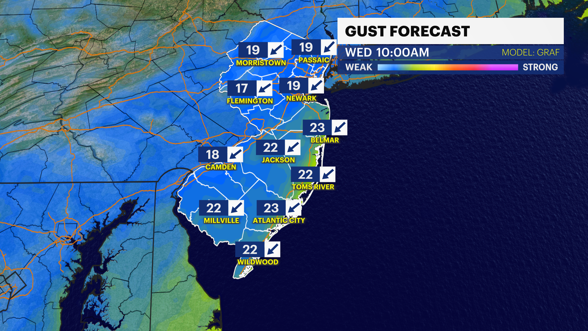 It is going to be another beautiful day for New Jersey, only just a bit cooler and breezier. Temperatures will likely top out at the upper 60s with gusts up to 30 mph possible.