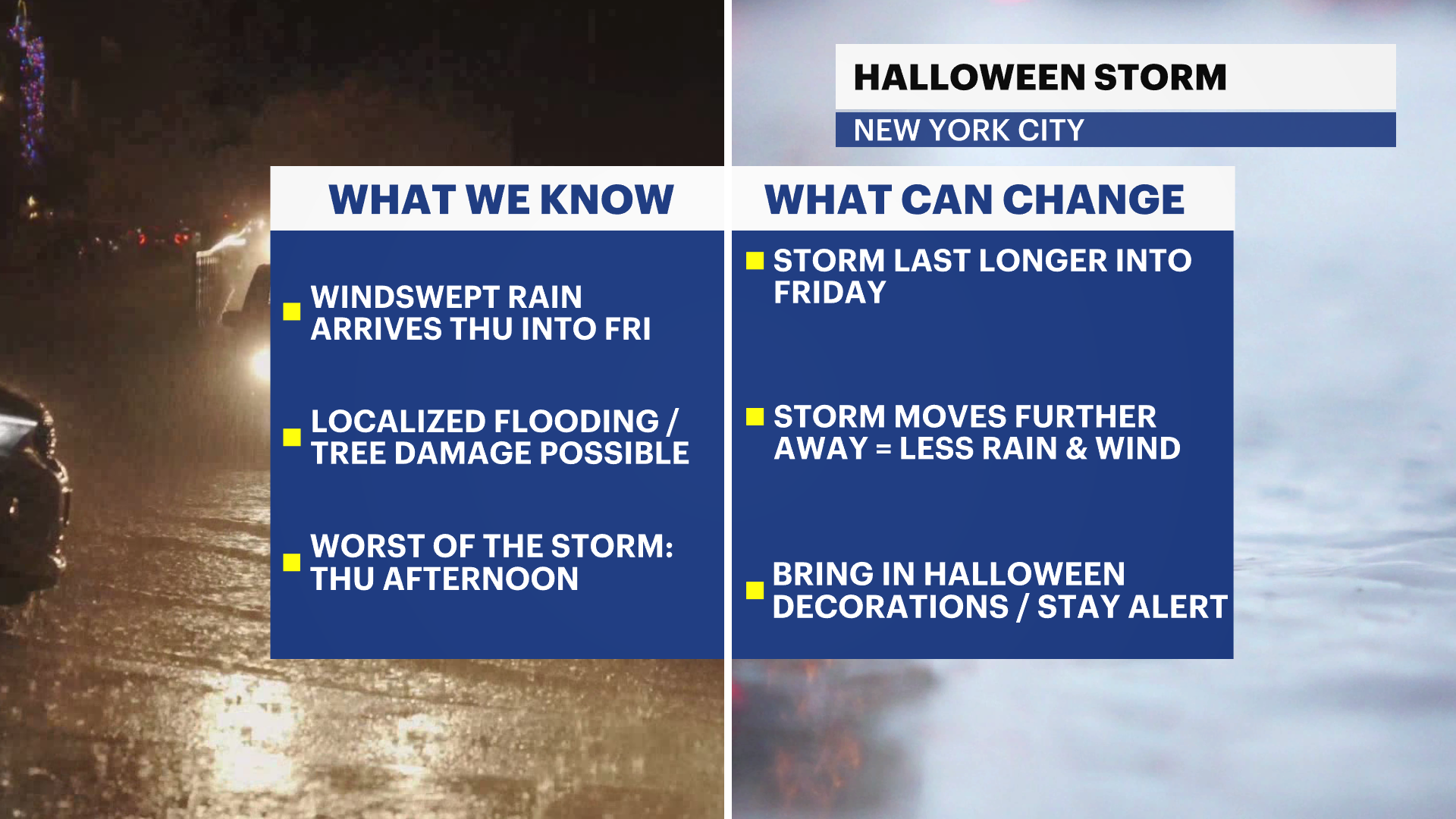 Friday (Halloween): Chance of breezy showers. Still unseasonably cool with a gradual clearing sky. Highs near 58. Lows near 48.