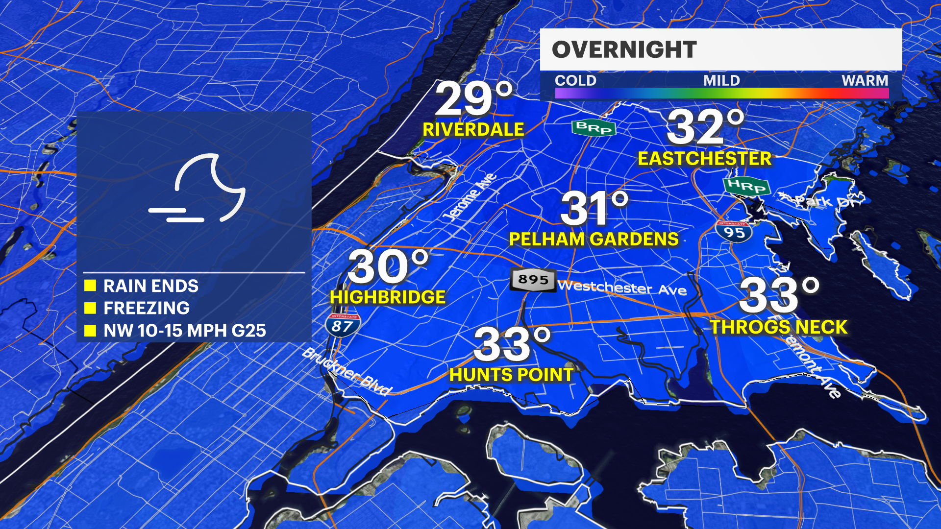Friday will make your teeth chatter as well with highs around freezing and lows in the 20s.