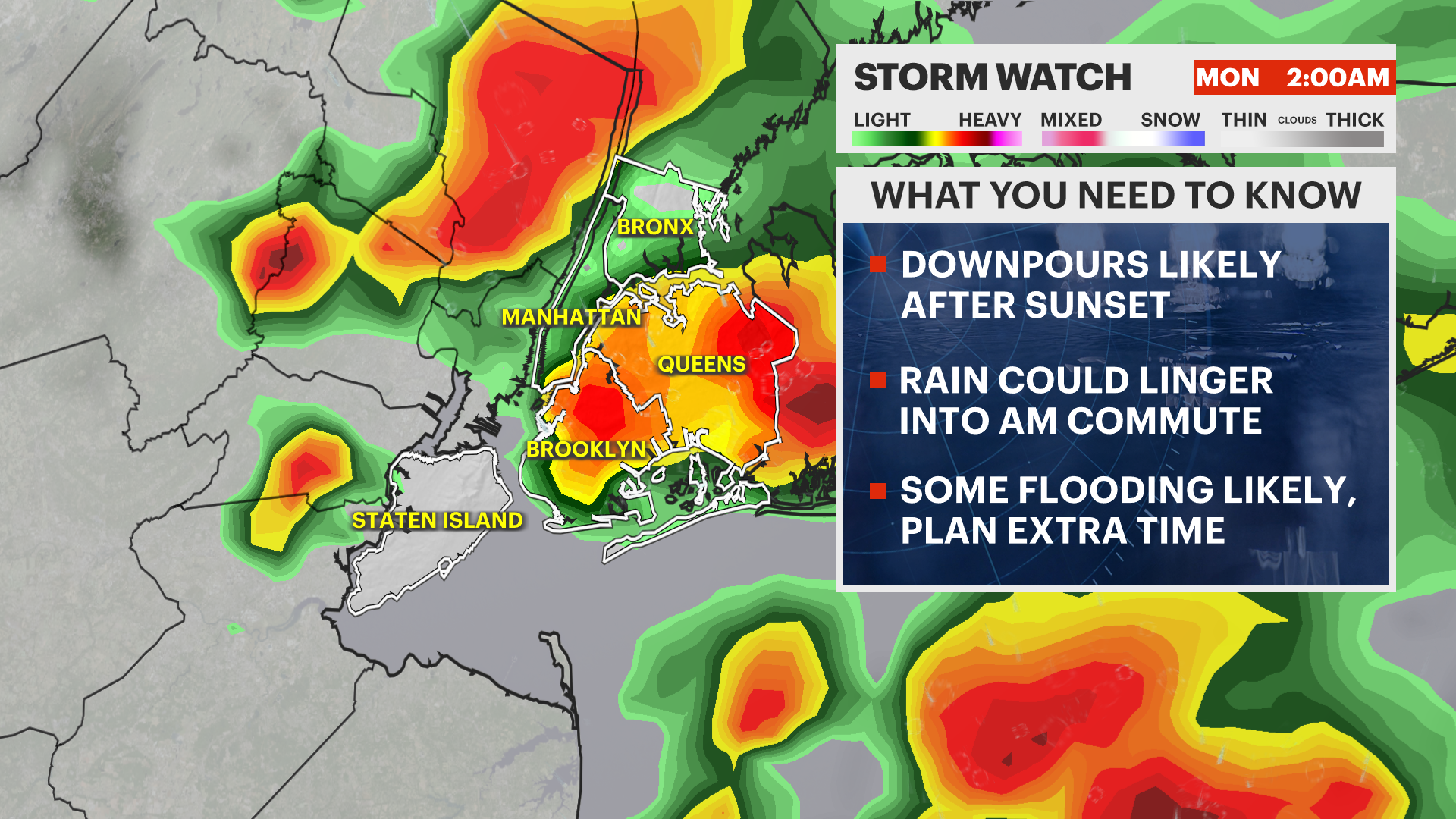 A flood watch is in effect for the NYC area until 6 a.m. on Monday.