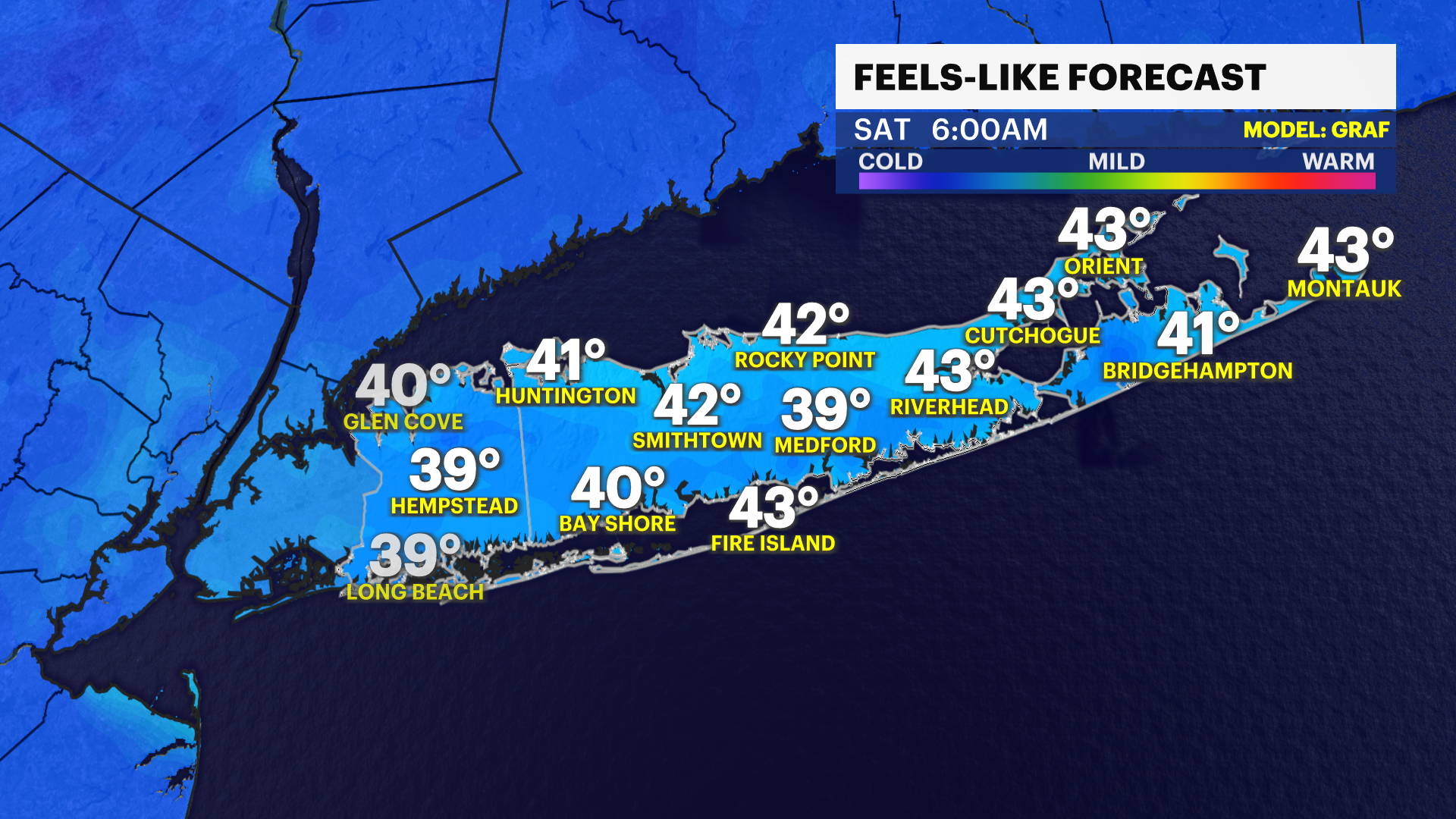 OVERNIGHT: Becoming mostly clear. Quite chilly with lows around 41 degrees. It can once again be several degrees colder - 30s - in and around the Pine Barrens. Choose a heavier coat into Saturday morning when heading out. Wind: northwest 5 to 10 mph.