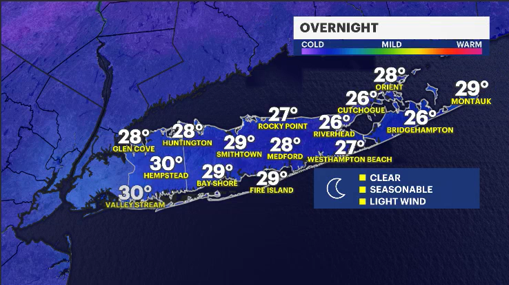 Clouds will increase tonight. Low temperatures are in the upper-20s.