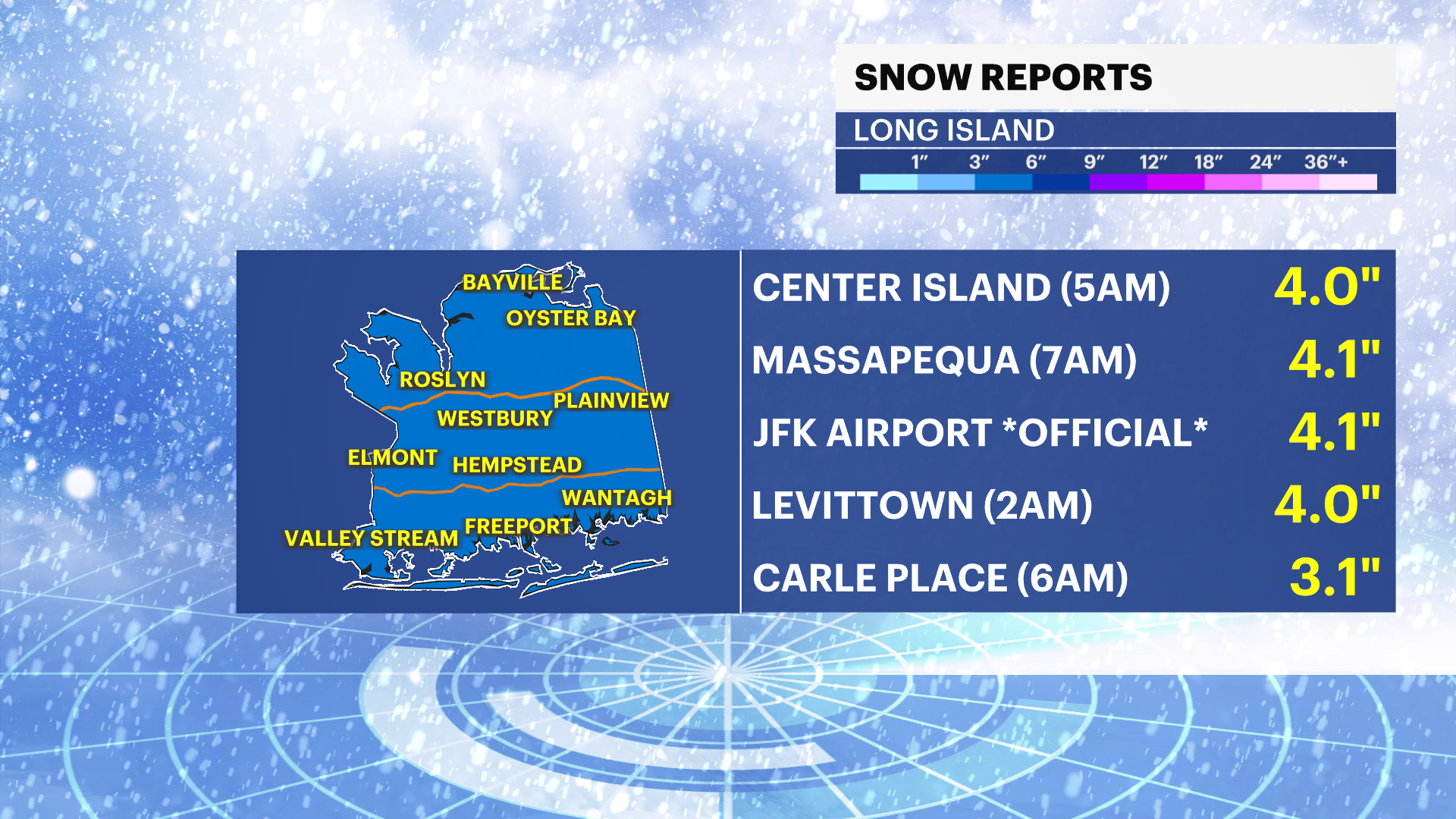 Official Numbers: 6.6 inches for Islip Airport & 4.1 inches for JFK