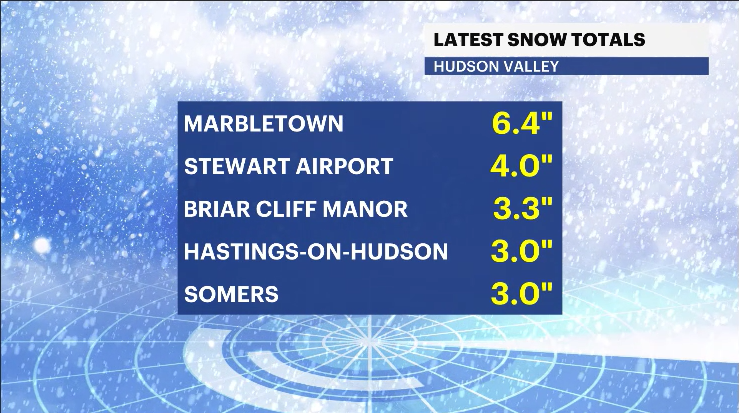 The winter storm brought roughly 4-8 inches of widespread snowfall across the lower Hudson Valley heading into the overnight hours. Light snow will continue into early Saturday morning, but any additional snowfall will be up to an inch at best. Snow-covered walkways, roads, and residential areas will remain a concern through Saturday morning.