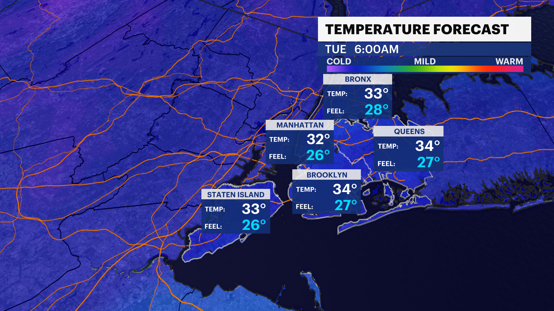 A freeze warning is in effect for The Bronx only from 12 a.m. to 8 a.m. tonight. A Frost Advisory could be issued for Brooklyn this afternoon.