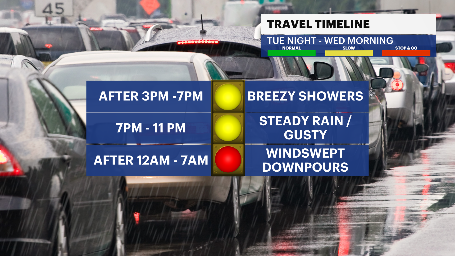 News 12 Storm Watch Team Meteorologist Hope Osemwenkhae says a large storm system will bring pockets of heavy rain, gusty winds, and significant travel impacts beginning Tuesday afternoon through midday Wednesday.