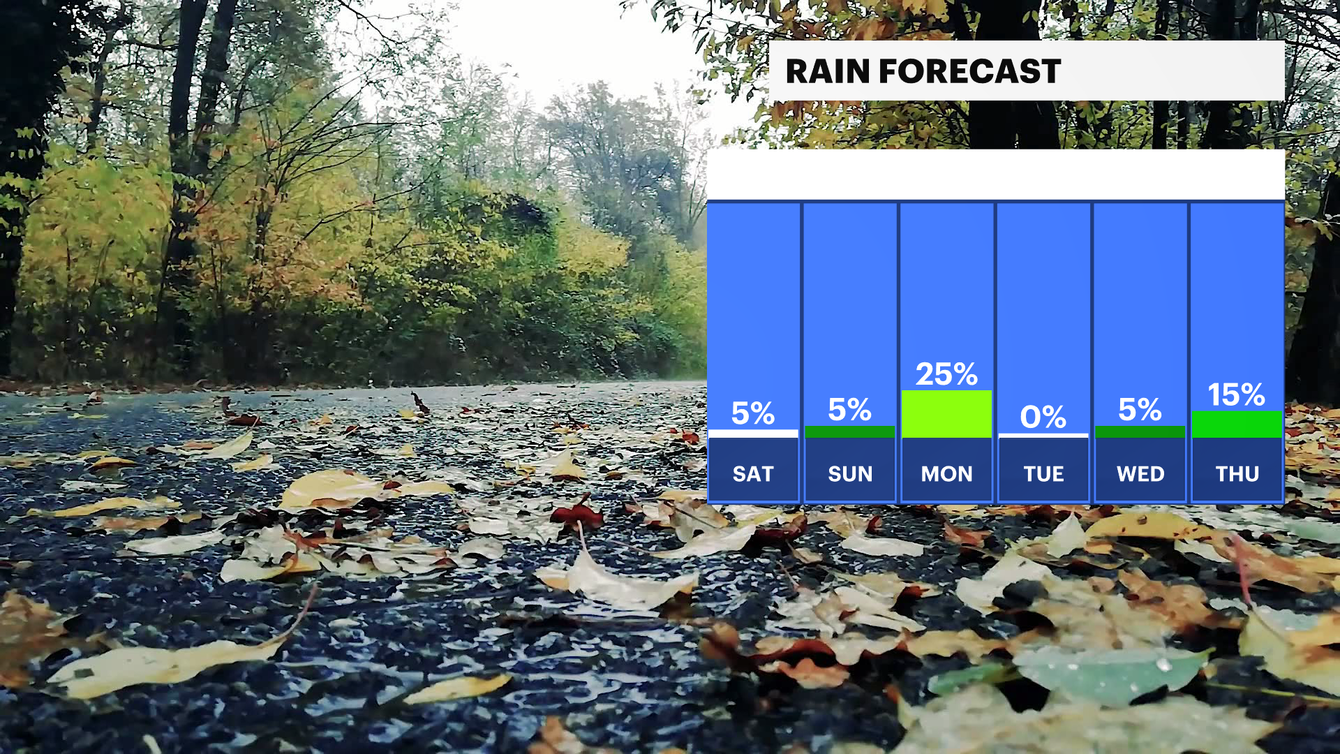 Next week is expected to start unsettled. A few showers are possible late Monday into early Tuesday. After that, skies clear with sunshine midweek before another chance of rain arrives late Wednesday.