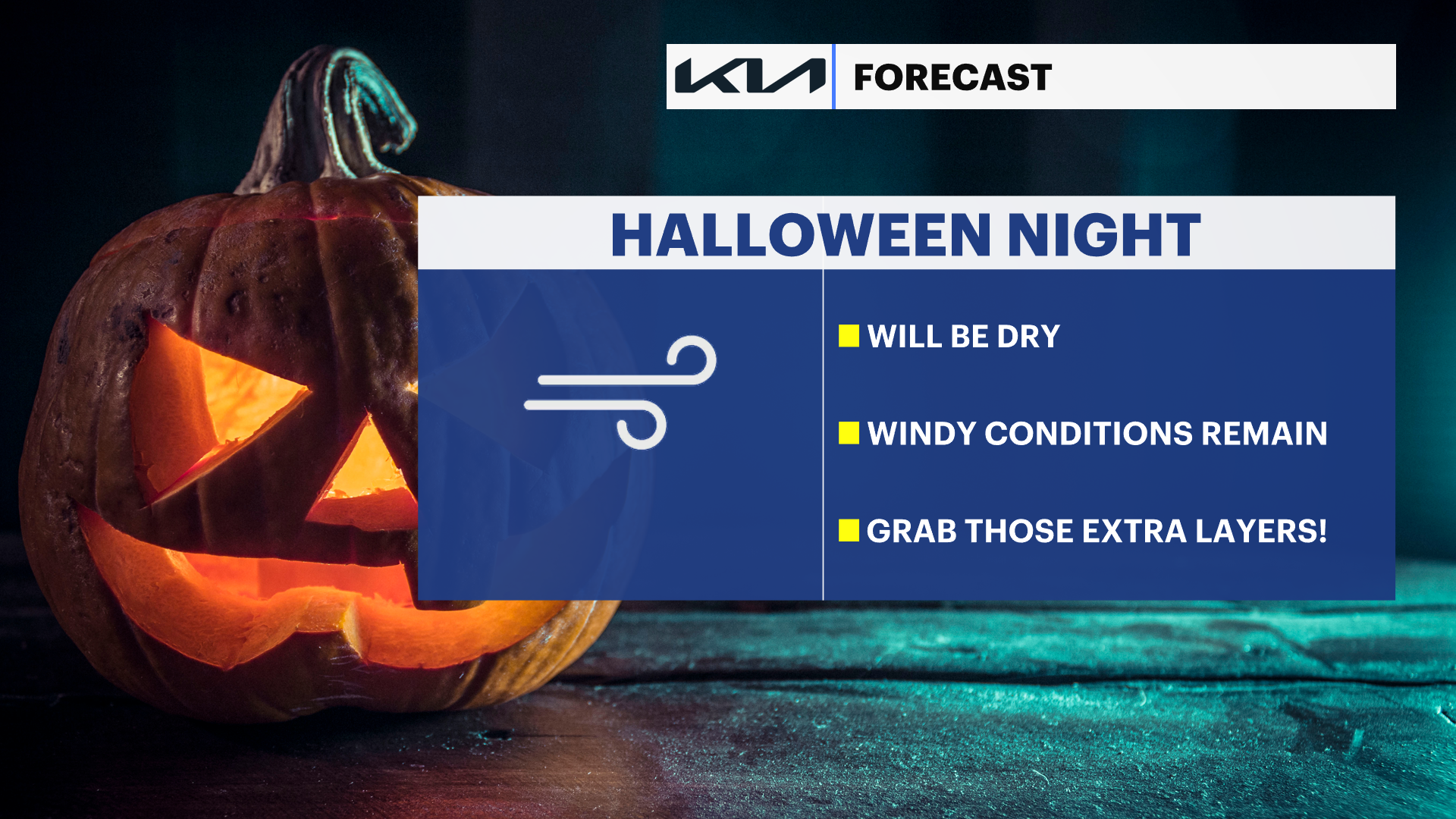 A windy night is ahead, with gusts up to 40 mph before winds gradually ease toward morning. Skies stay mostly clear, and temperatures dip into the mid-40s, making it feel brisk.