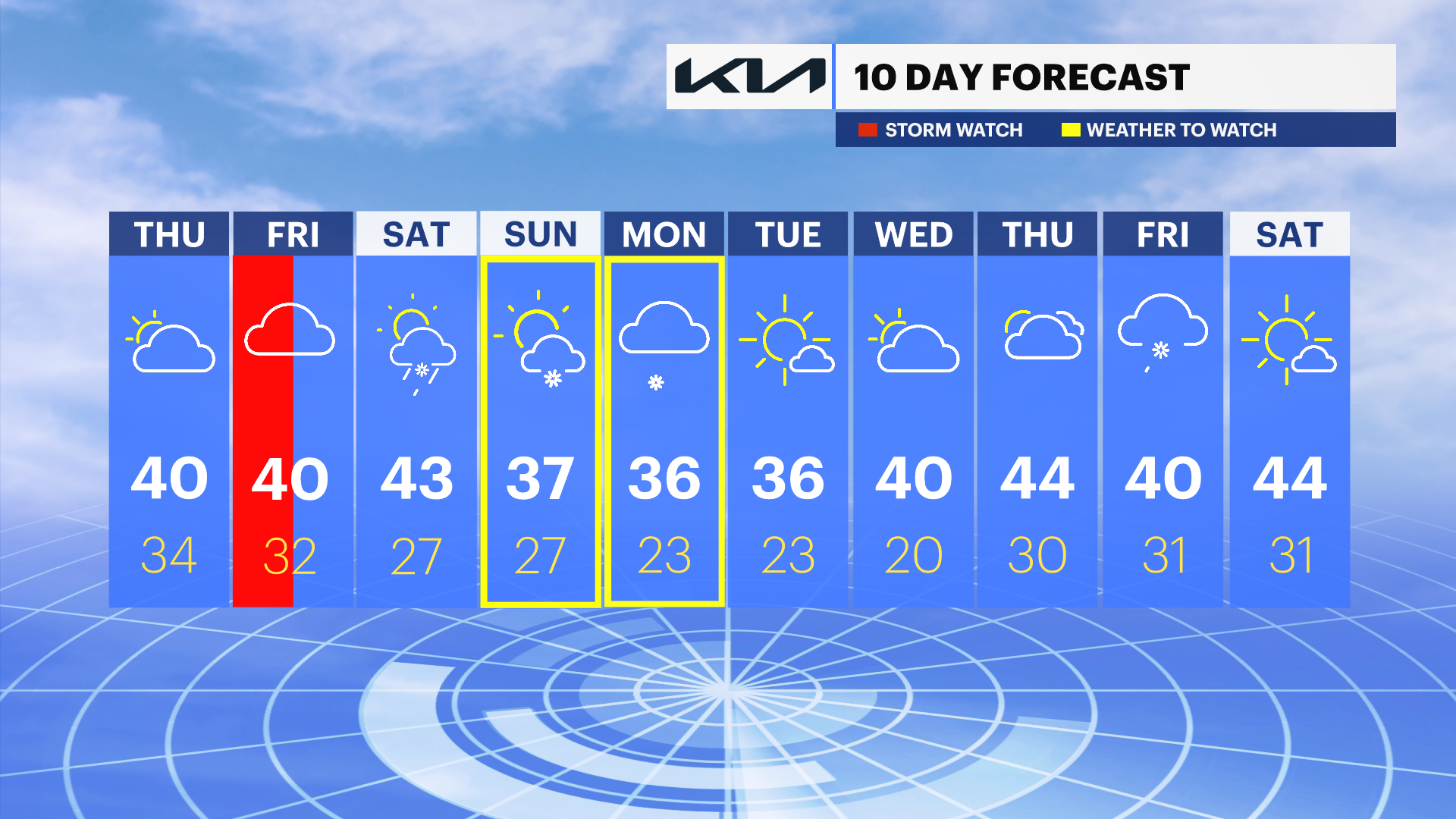 STORM WATCH: Two rounds of storms we are tracking. Soggy weather conditions today with periods of rain through the day. Temperatures near 40, and rain will lead to more snow melt and wet roads plus some minor localized street flooding. Have the umbrella handy for today.