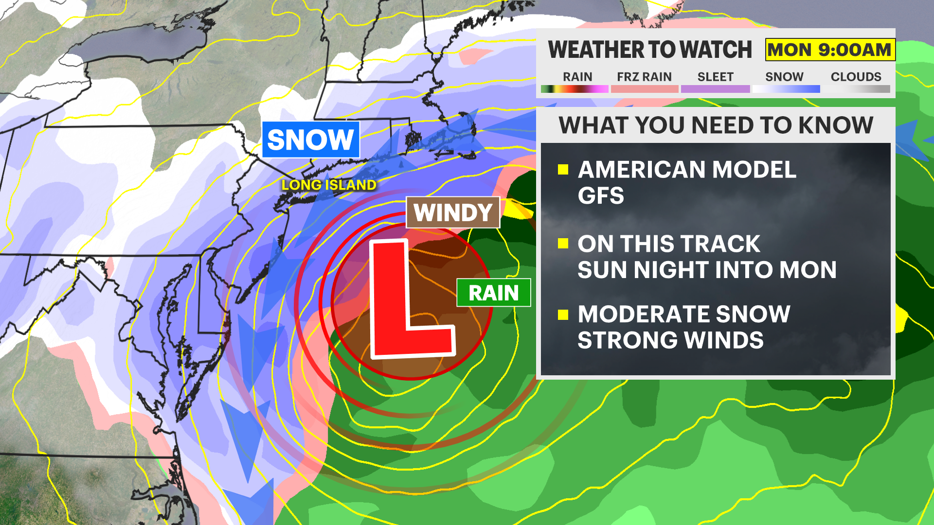 Storm two comes arrives Sunday into Monday. The two main weather models GFS (American) and ECMWF (European) both have more than 4 inches of snow for Long Island. Start time will be Sunday afternoon into Monday. The potential for heaviest snow will be Early Monday morning with gusting winds near 30 to 40 mph. The track and strength of storm will determine exact snow amounts, plus potential of coastal flooding.