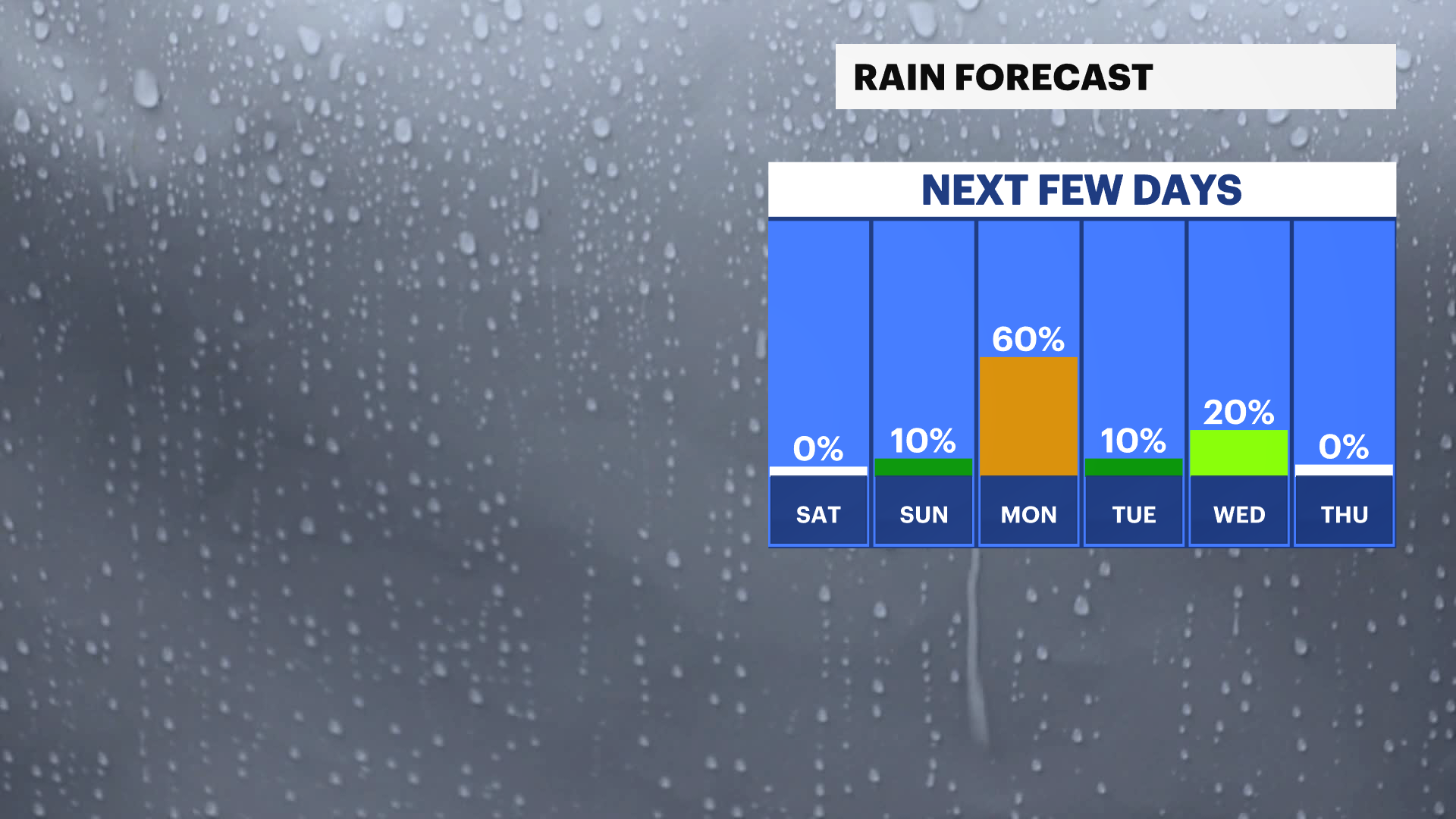 TUESDAY: Dry start before evening rain. Highs in the mid-60s. Lows in the low 50s.