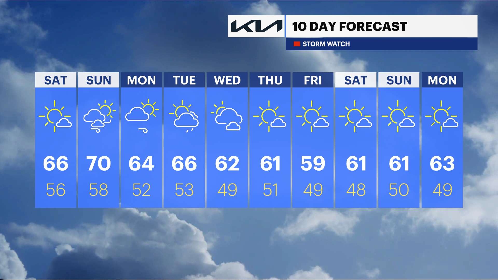 SATURDAY: Plenty of sunny skies. Highs in the mid-60s. Lows in the mid-50s.