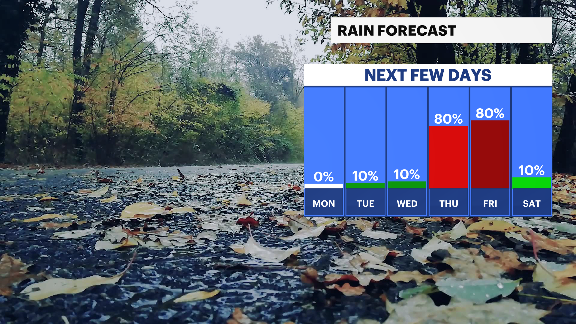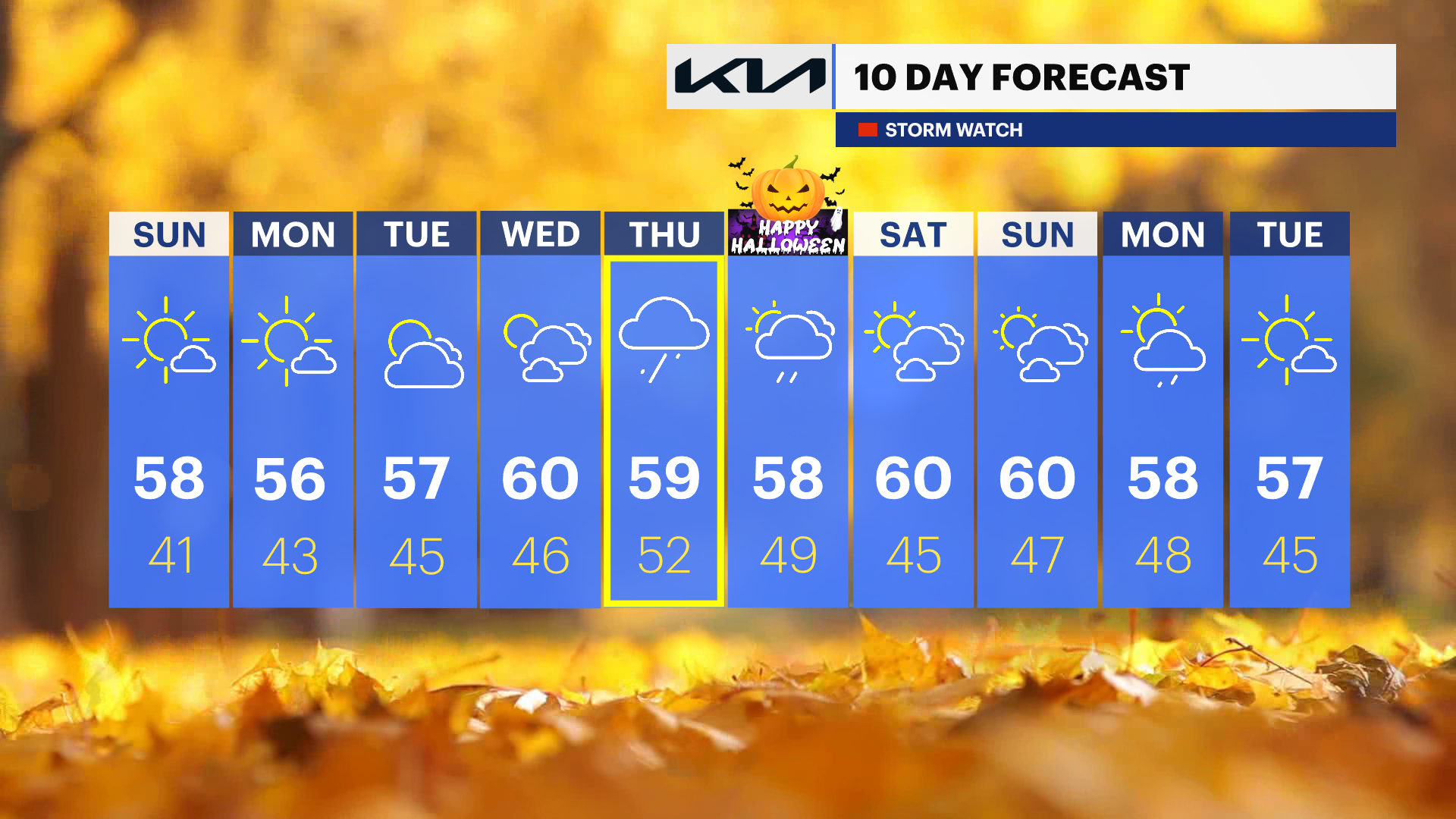 Temperatures are running cooler than usual for late October though. Today will feature patchy morning fog, lows in the 40s, and highs in the mid-50s. The workweek starts off chilly, with highs struggling to rise above the mid-50s after a start in the frosty 30s. As high pressure moves out Monday, a low-pressure system tracking through the Southeast will bring increasing rain chances from Tuesday through the end of the week. The wettest day of the week may be Thursday with conditions hopefully improving by Halloween night. Stay tuned as we fine tune the forecast!