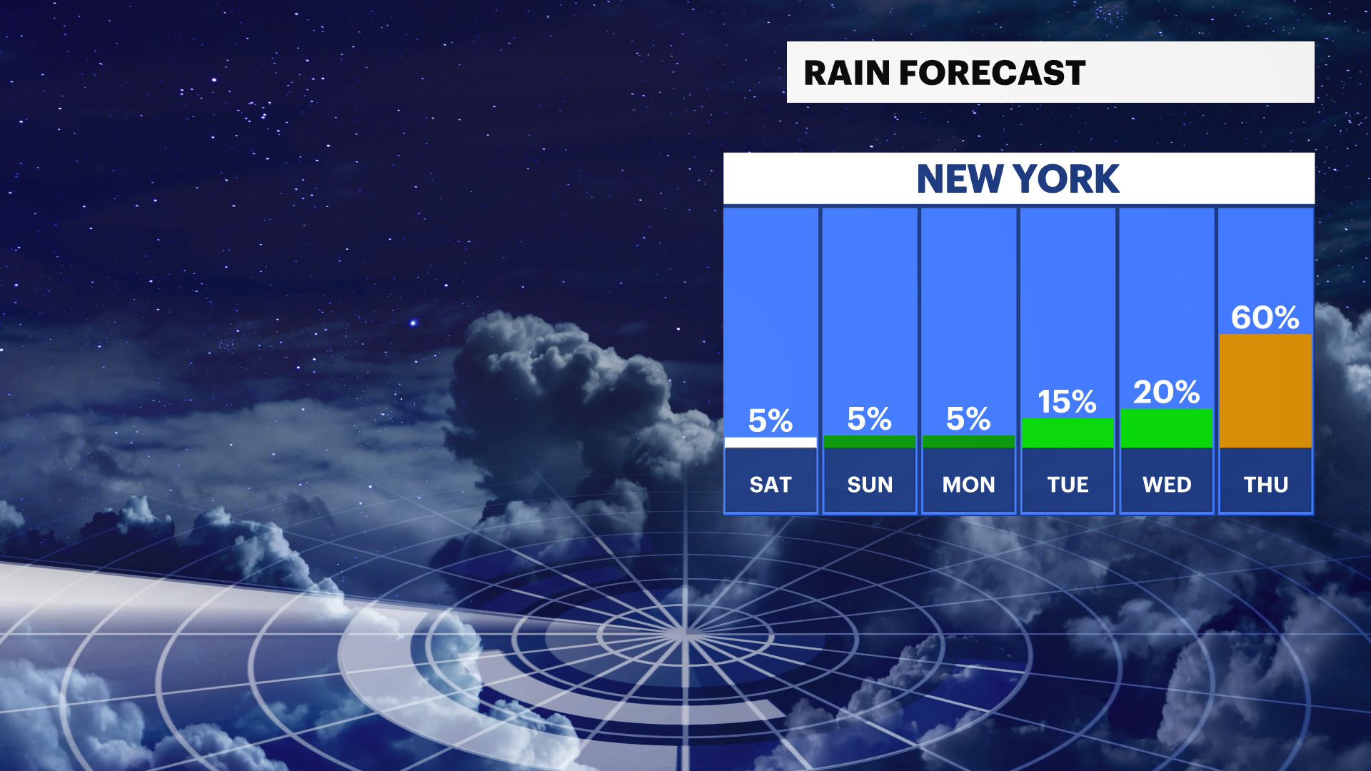 THURSDAY: Showers possible. The exact track and intensity of this storm is dependent on Tuesday's storm. Highs near 54. Lows around 42.