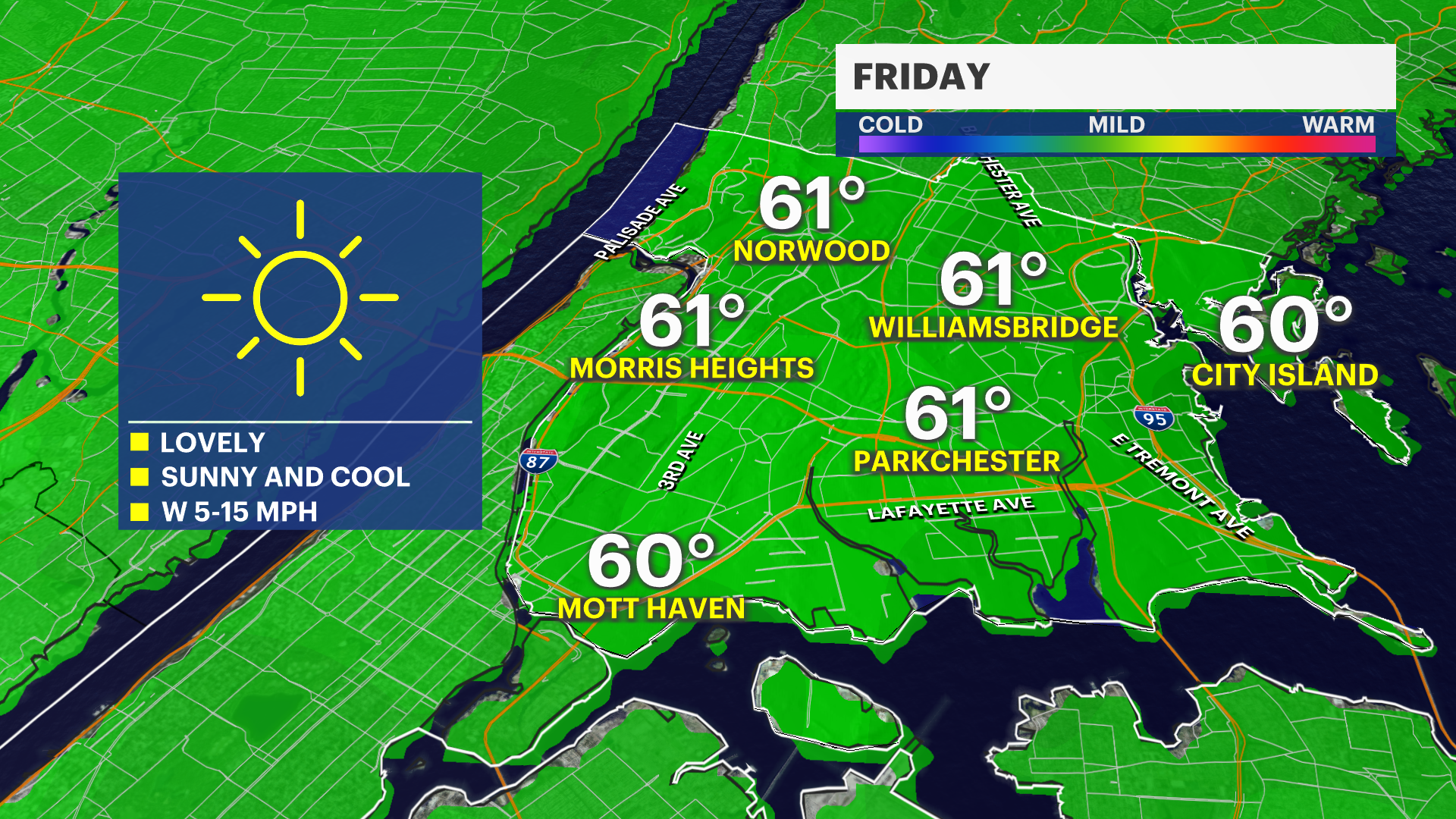 The Bronx will see plenty of sunshine and clouds, with cooler temperatures on Friday.