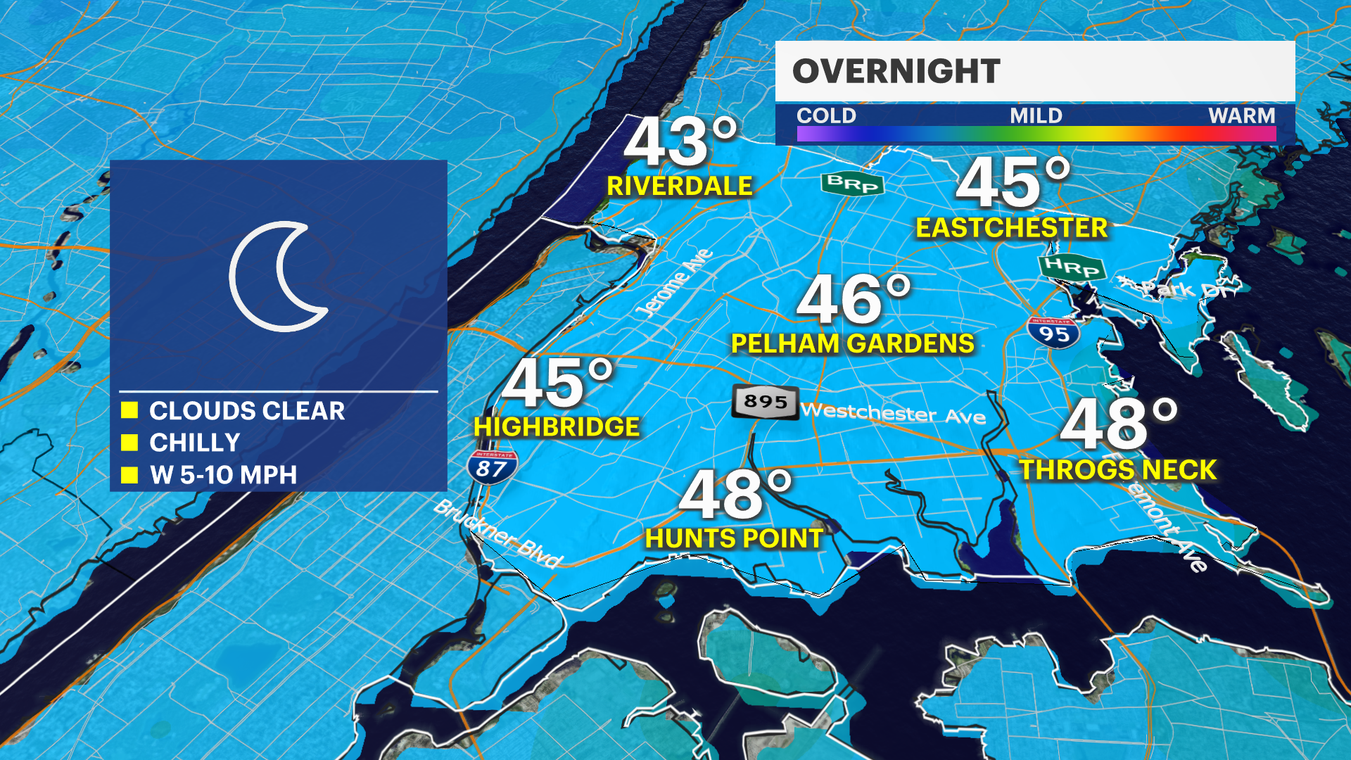 Sunshine and clouds, with cooler temperatures for Friday in The Bronx