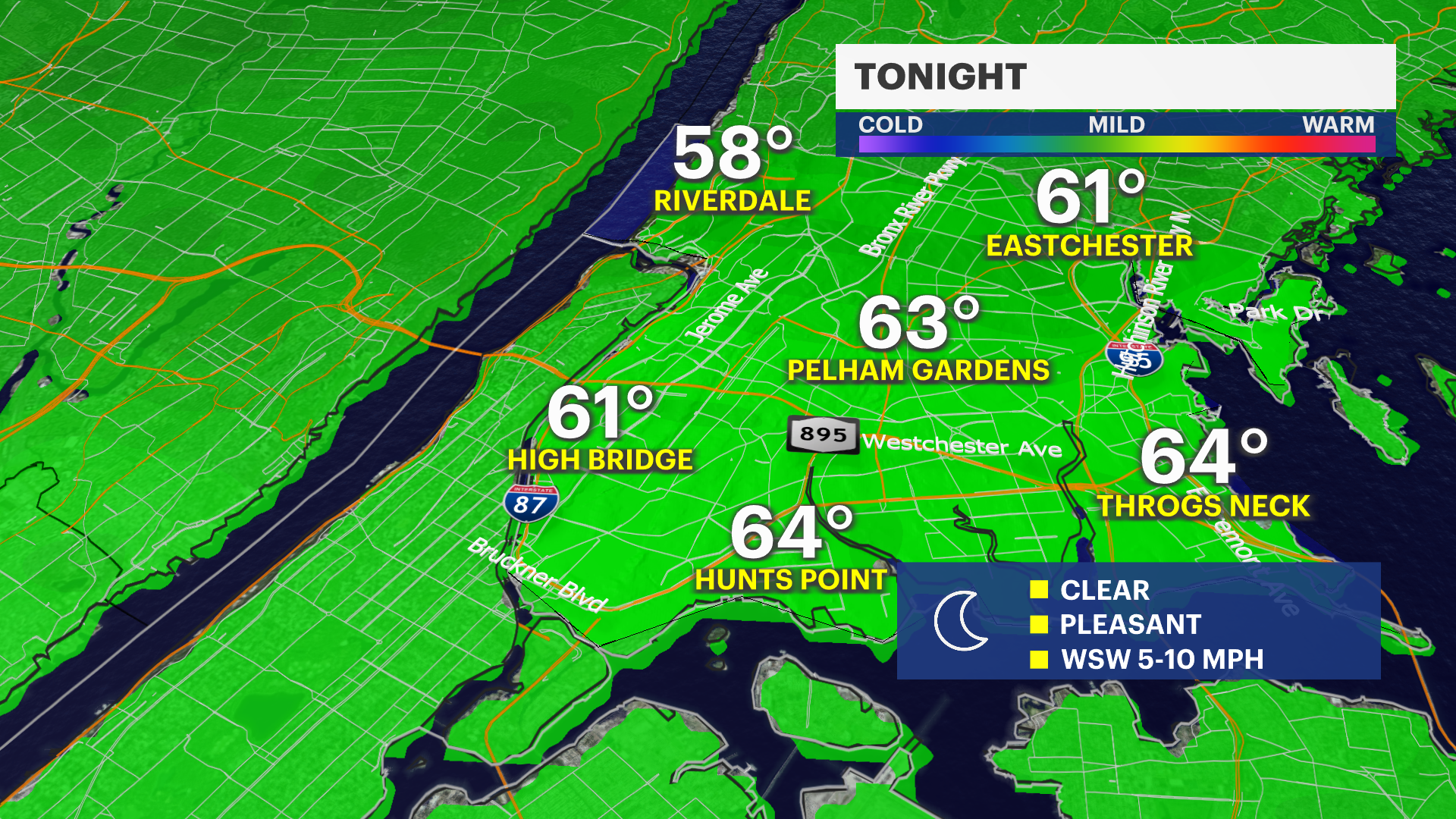 OVERNIGHT: Lows in the 60s, clear and comfy.