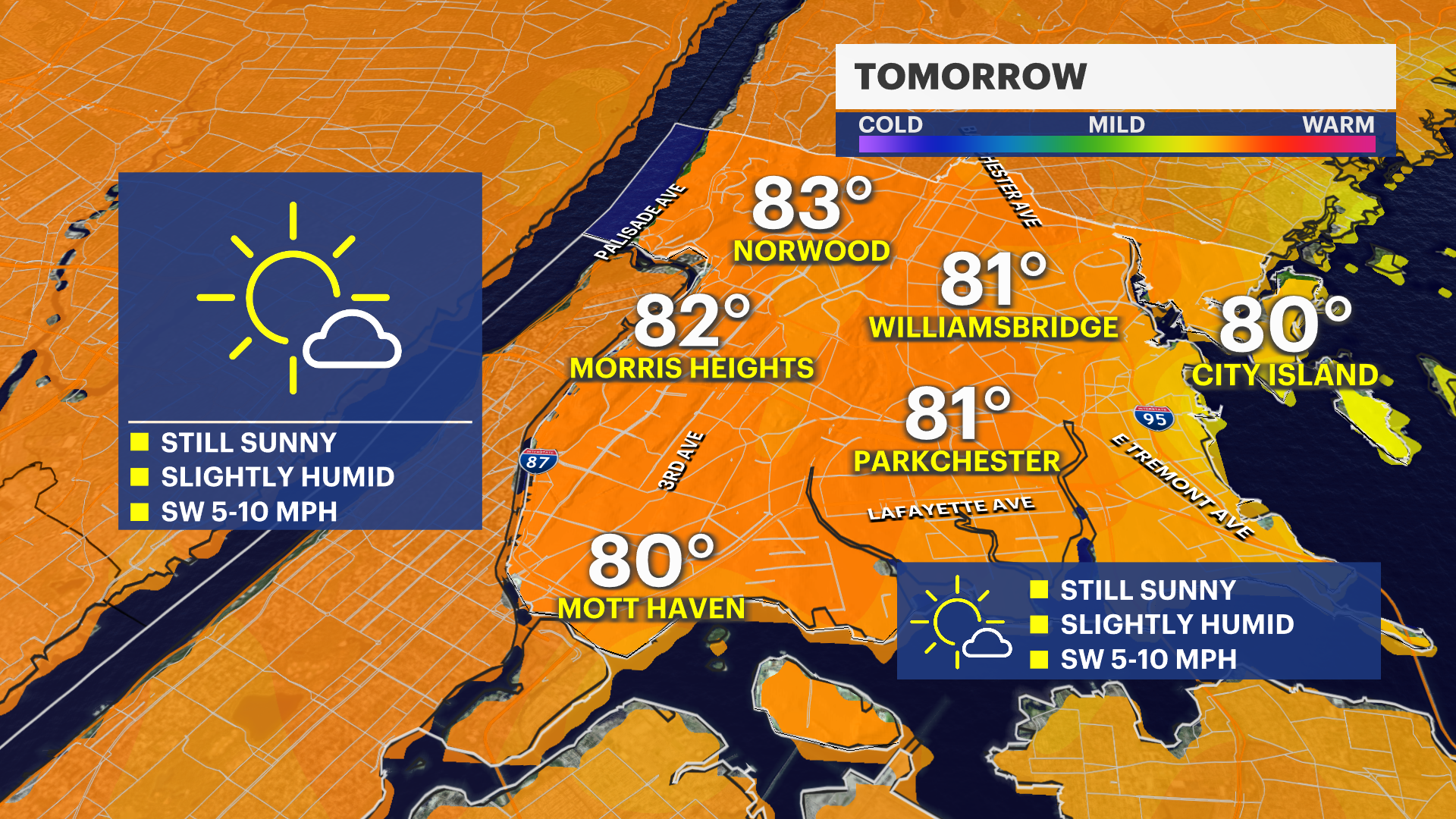 MONDAY: Partly cloudy. Highs in the 80s and lows in the lower 60s.