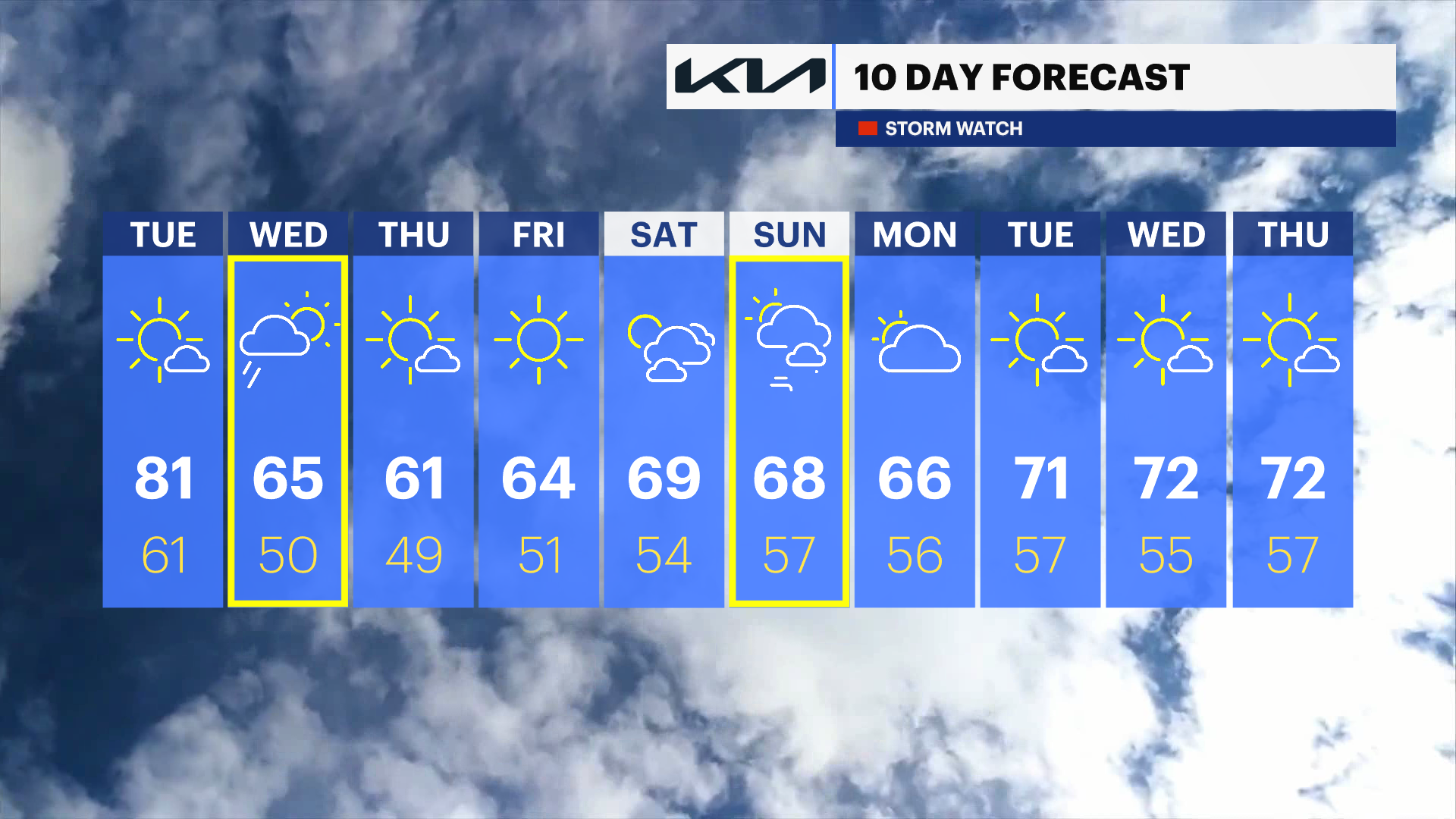 Wednesday the frontal system that brings us the rain will also bring us much cooler weather, with temperatures back in the 60s for Wednesday through the rest of the week and potentially into the weekend.