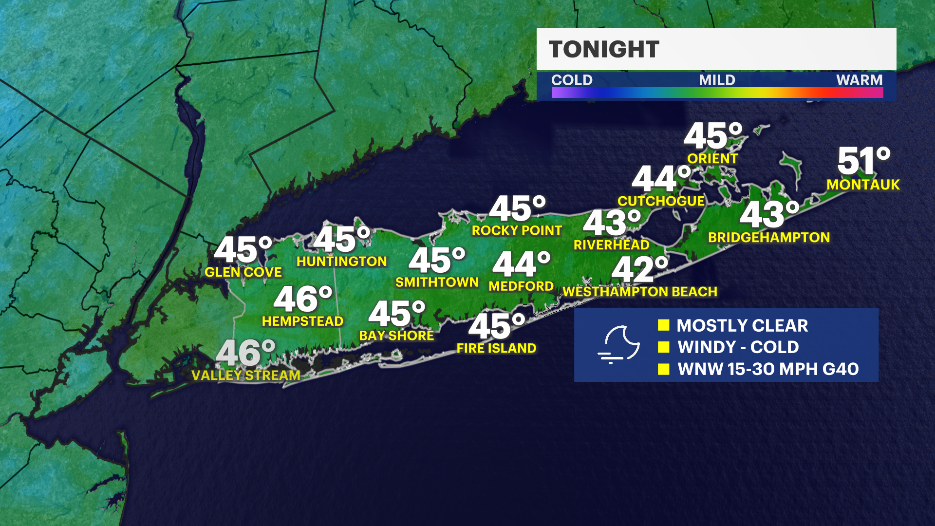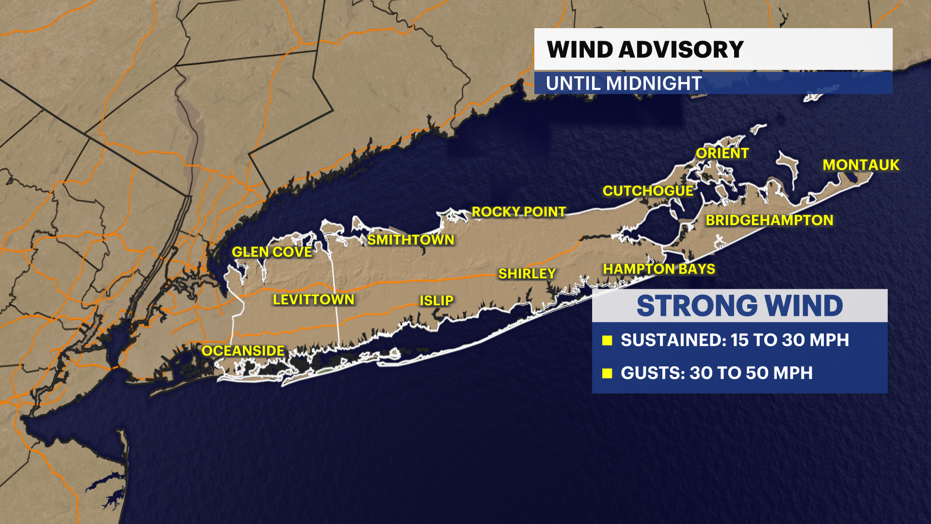While there were some breaks of sun and nice weather across Long Island for part of today, the wind has certainly picked back up and is causing scattered damage and power outages. Sustained wind out of the west is around 15 to 30 mph with gusts up to around 50 mph. A wind advisory is issued by the National Weather Service until midnight.